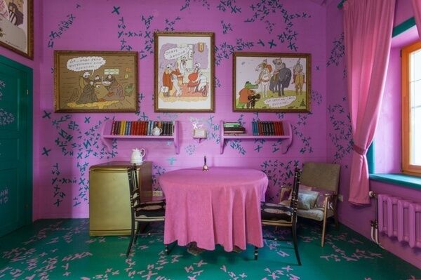 В интерьере комнаты объединились интерес автора к истории и нежность к российской глубинке.