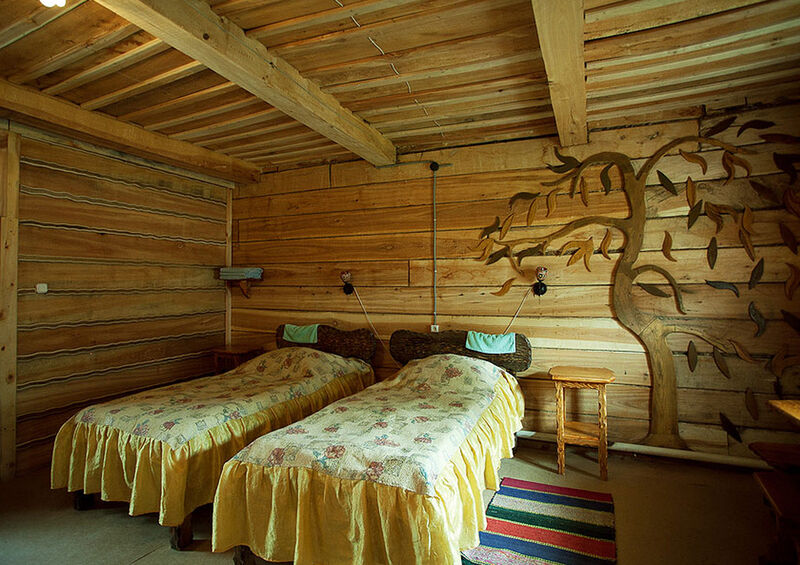 В каждом из 6-ти домов по одному номеру, 7-ой дом рассчитан на два номера. Все номера трехместные (двуспальная кровать + односпальная либо три односпальные). Двух-, одноместное размещение также возможно (оговаривается при бронировании).