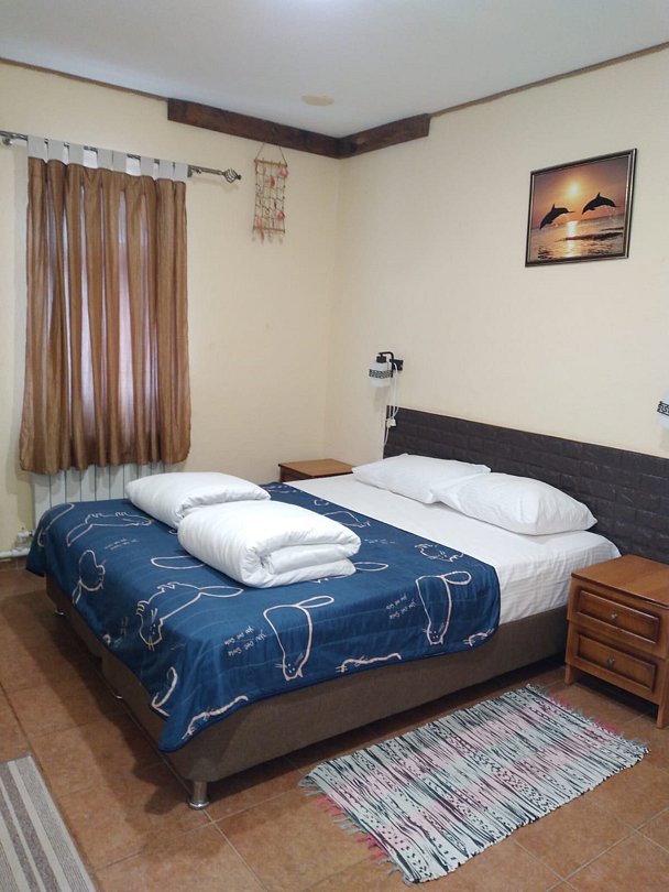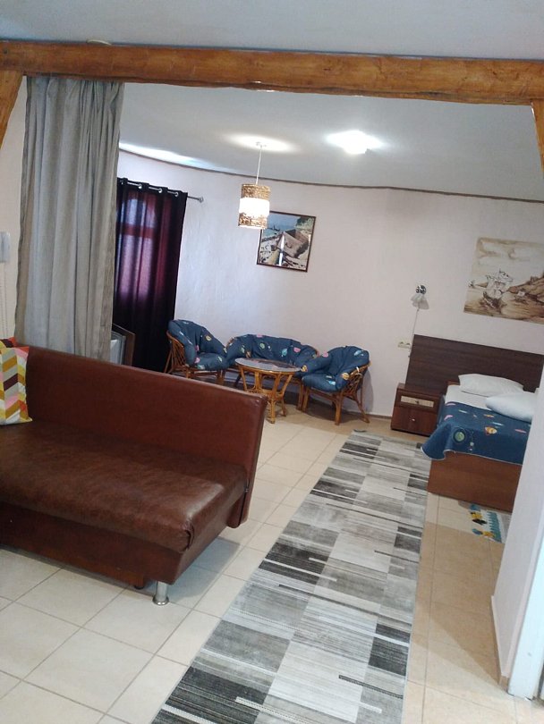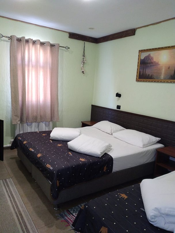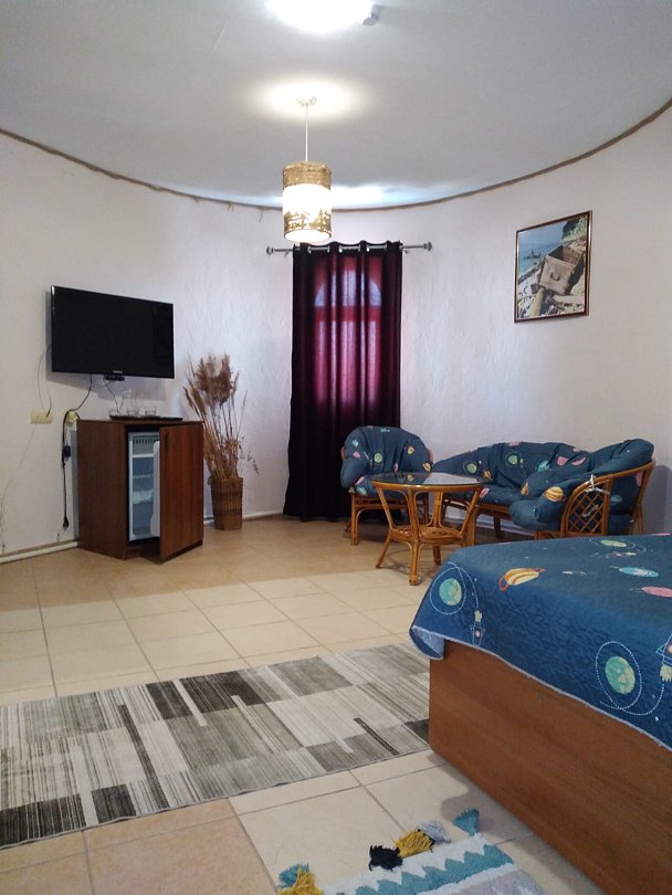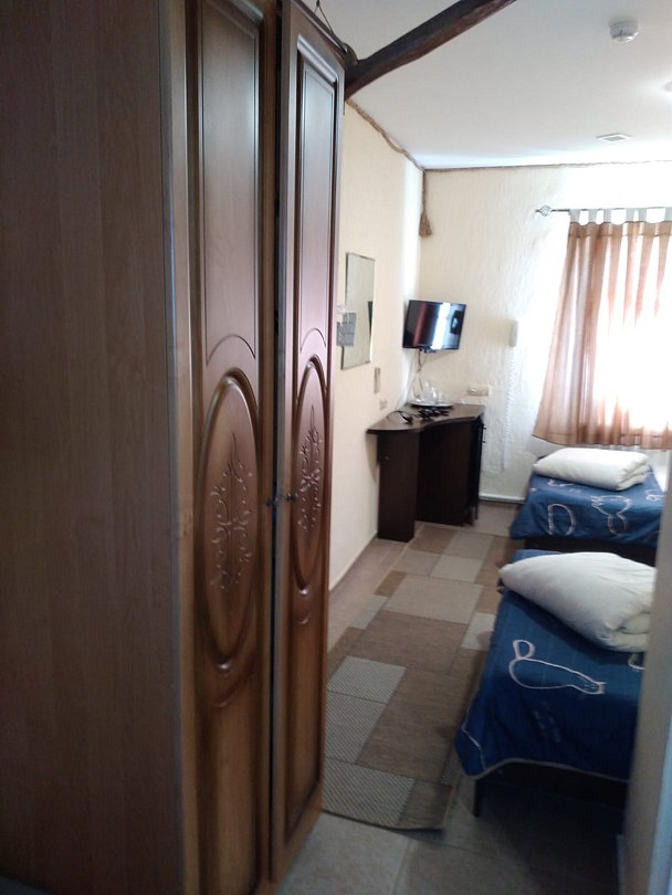 Номер категории «Стандарт трехместный» площадью 21 м² оснащен всем необходимым для Вашего отдыха и комфортного пребывания на Тамани. Деревянные панели придают номеру атмосферу античного духа Боспорского царства.