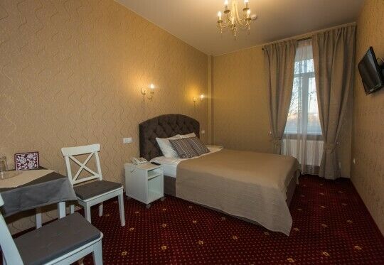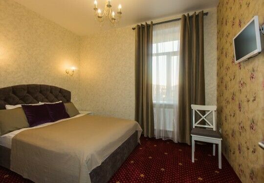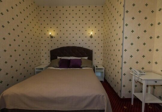 В номере двуспальная кровать, прикроватные тумбы, телевизор. Душ и санузел.