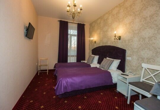 В номере две односпальные кровати, прикроватные тумбы, телевизор. Душ и санузел.
