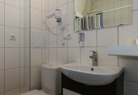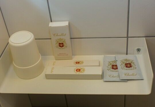 - Туалетные принадлежности: тапки, шампунь, гель, зубной набор, губка для обуви, шапочка для душа, бритвенный набор.