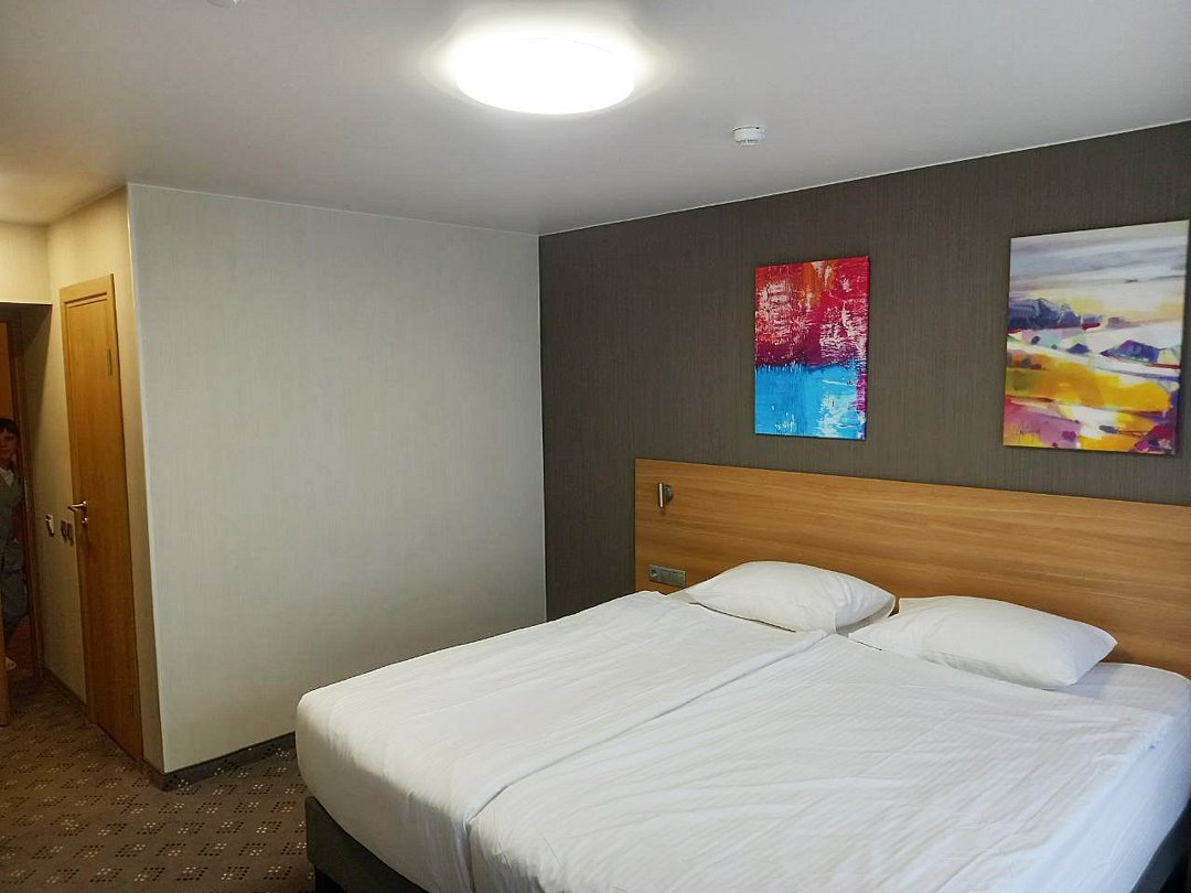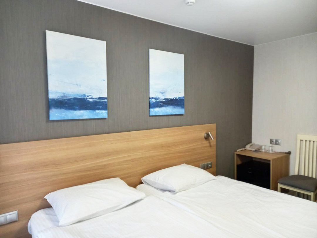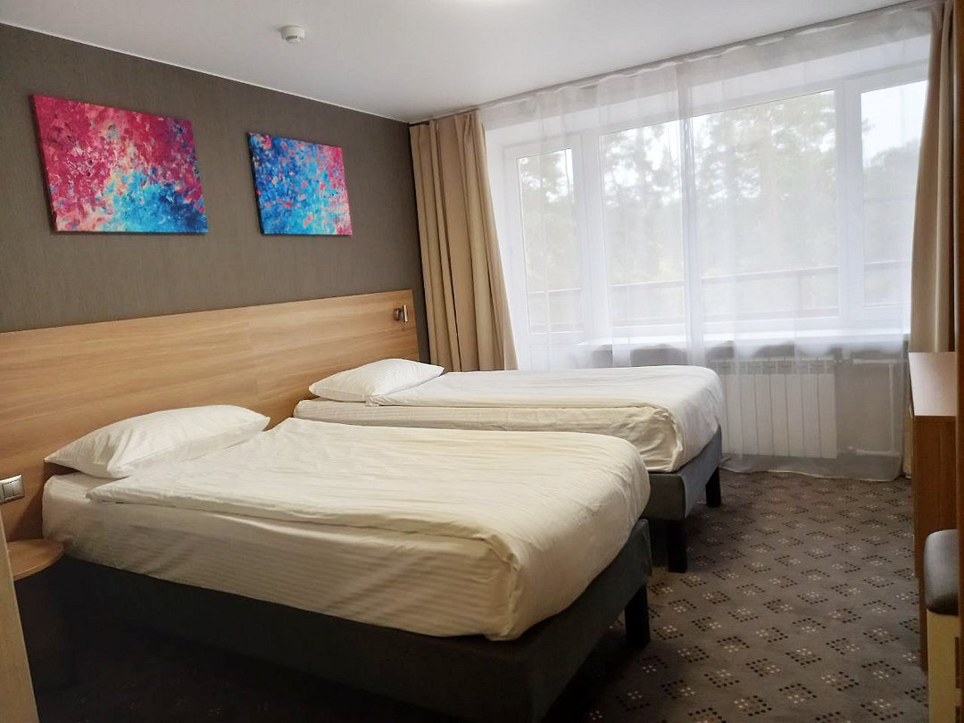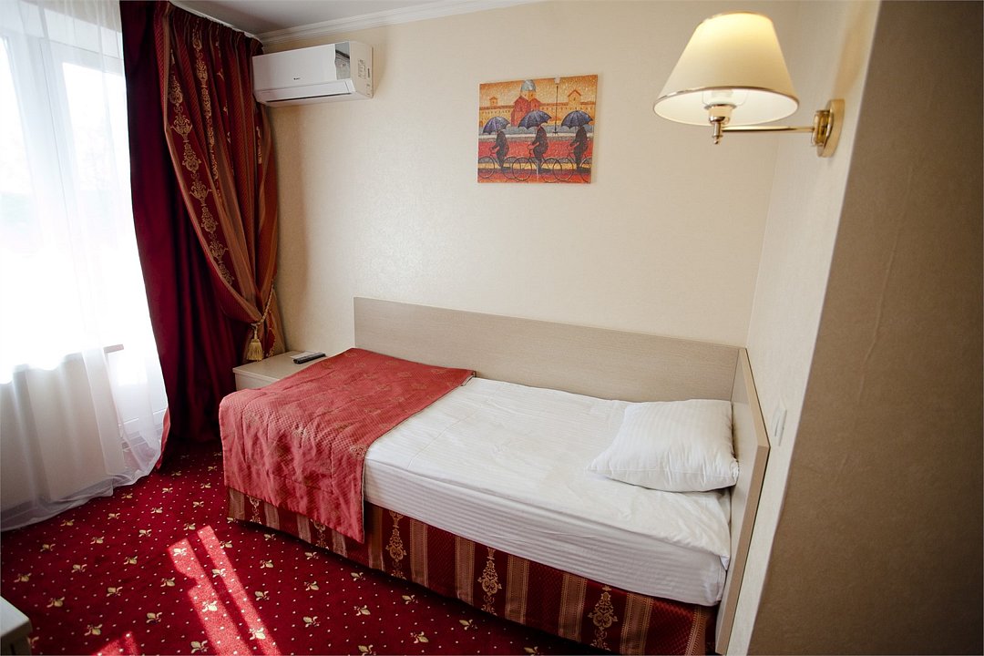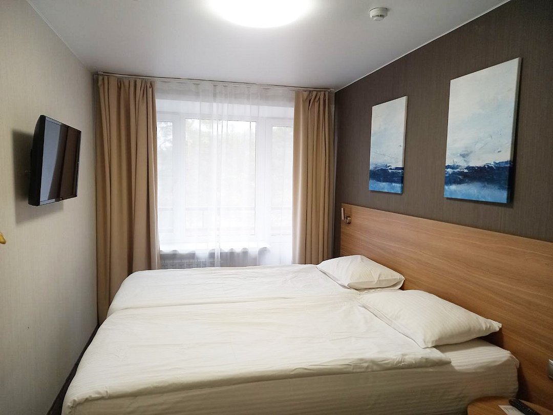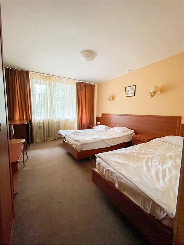 Однокомнатный номер площадью 13,2 кв.м без кондиционера. В номере две односпальные кровати, стол с зеркалом, шкаф, плазменный телевизор, холодильник, телефон. В ванной комнате: душ, фен.Услуги и удобства