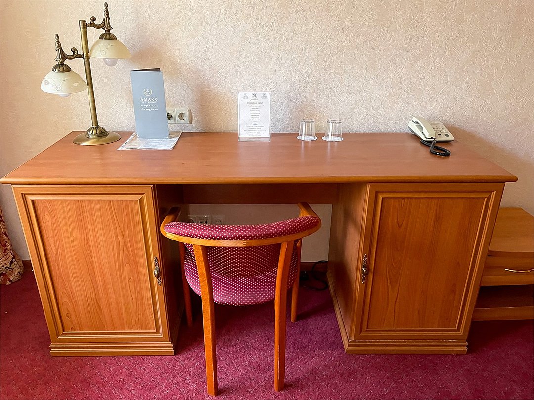 телевизор, Wi-Fi, телефон, холодильник, светильник, фен, банные полотенца, балкон, две односпальные кровати, тумбы, шкаф для одежды, вешалки, письменный стол, зеркало, обслуживание номеров, унитаз, раковина, душ, кулер на этаже, вид на реку, вид во двор, стаканы, можно с питомцамиВ номере