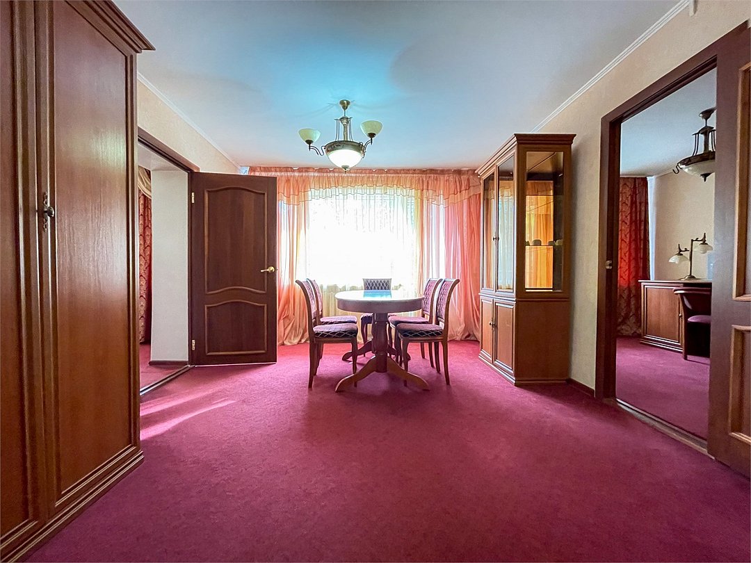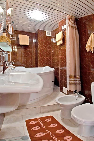 Просторный трехкомнатный номер площадью 52 кв.м. В номере: Двуспальная кровать "King size" (180*200), туалетный стол с зеркалом, телевизор ( 1 плазменный), кондиционер, письменный стол, 8 стульев, диван, 2 телефона, большой мягкий диван, сервант, стол, шкаф, полка для багажа, холодильник,сейф,камин, ванна, биде, фен, туалетные принадлежности, тапочки, махровый халат.Услуги и удобства
