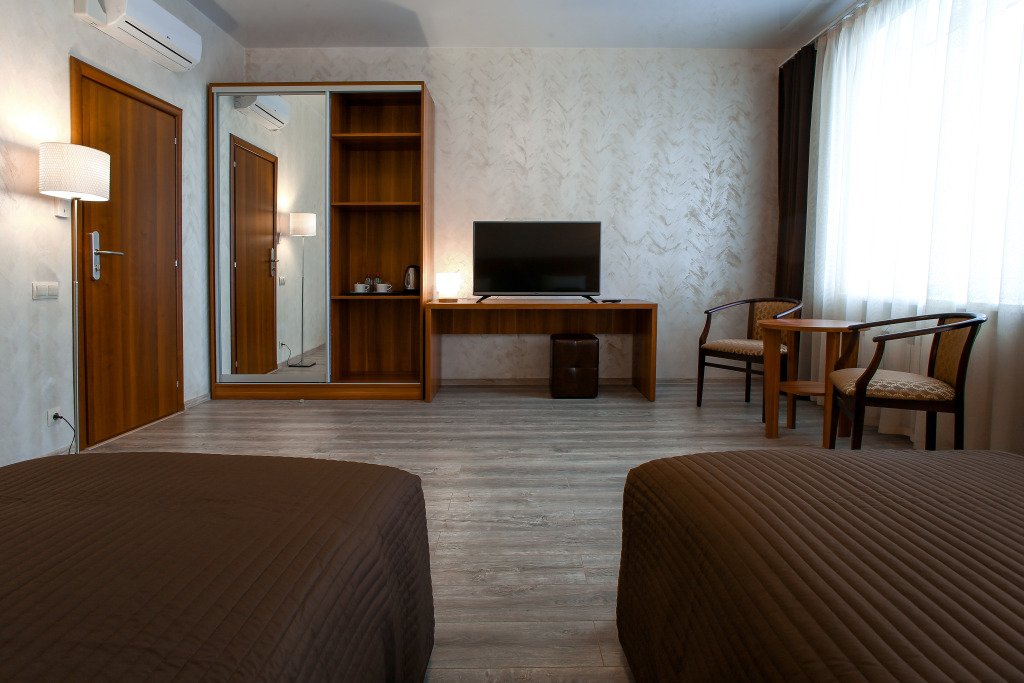 В номере вас будут ждать телевизор и халат. Оснащение зависит от выбранной категории номера.