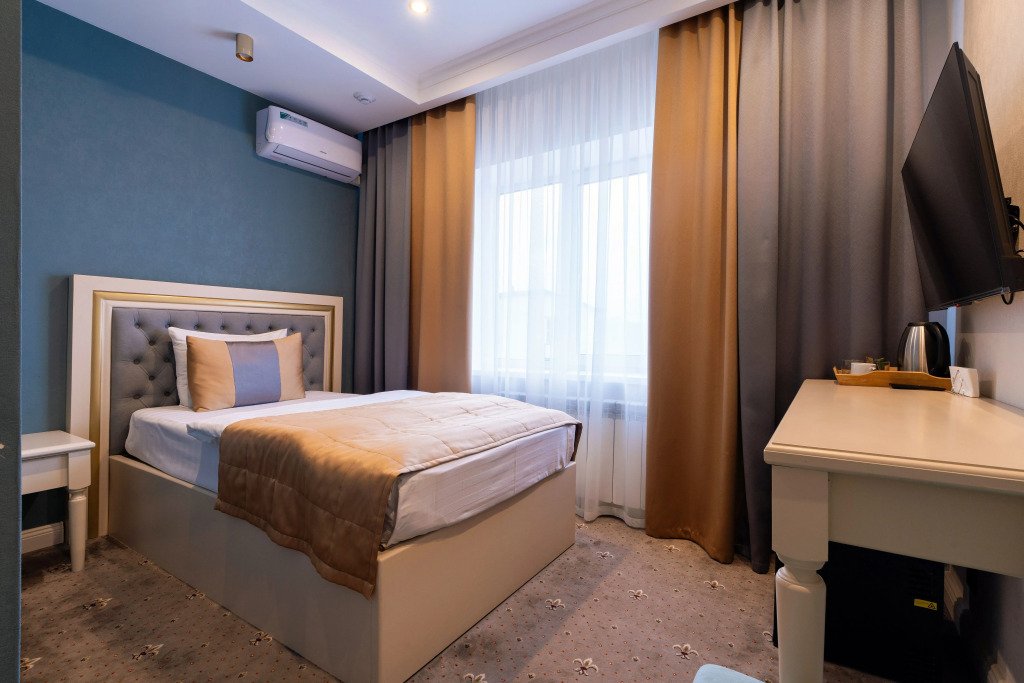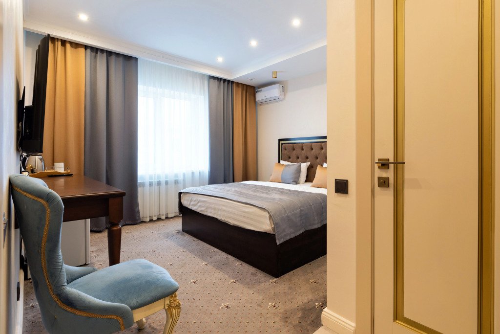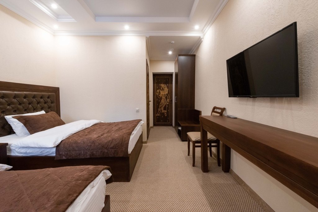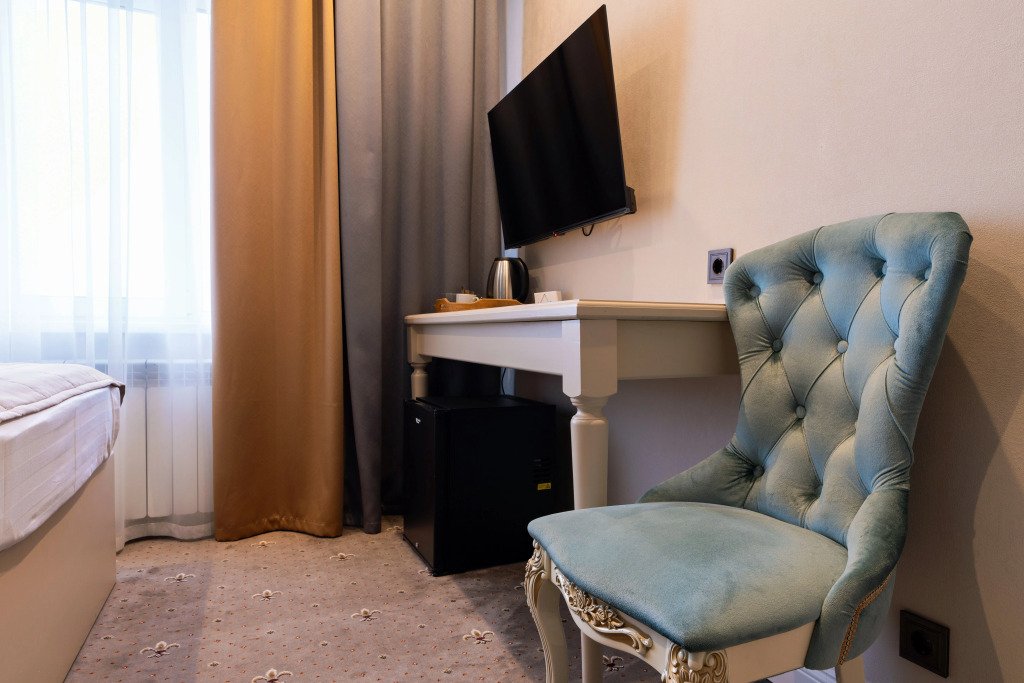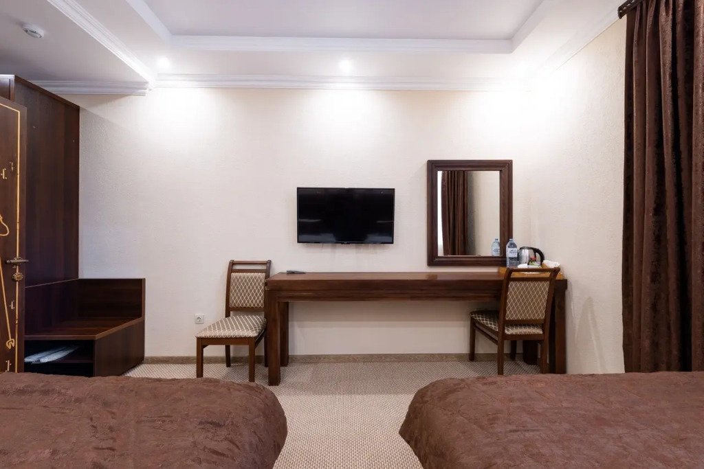 Номер уютно обставлен и оснащён необходимым, чтобы отдохнуть после долгого и насыщенного дня. Имеются телевизор. Оснащение зависит от выбранной категории номера.
