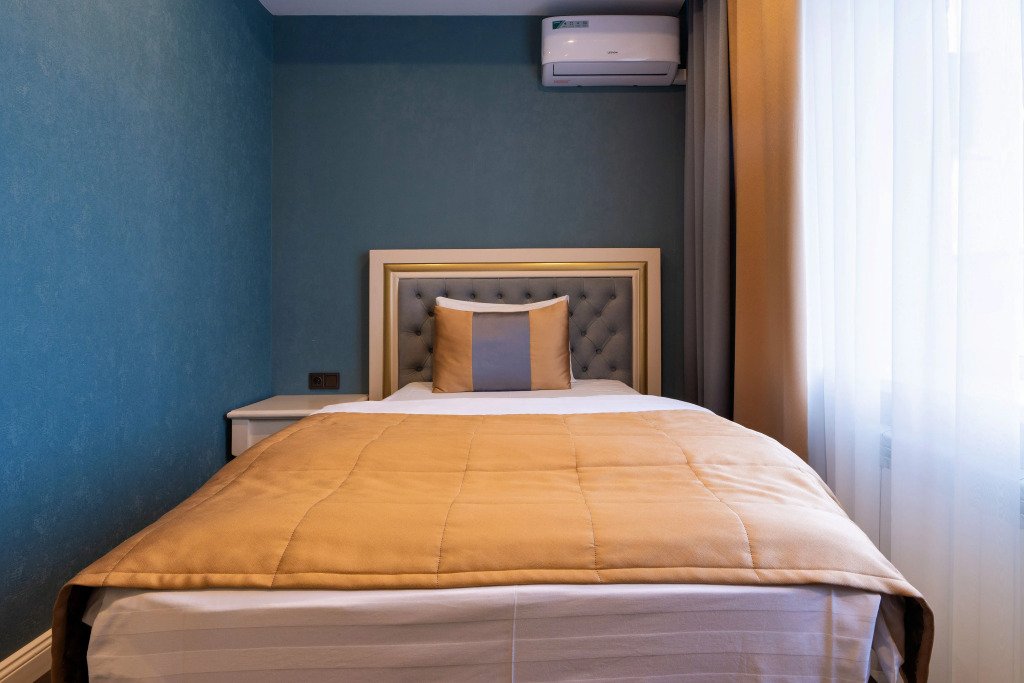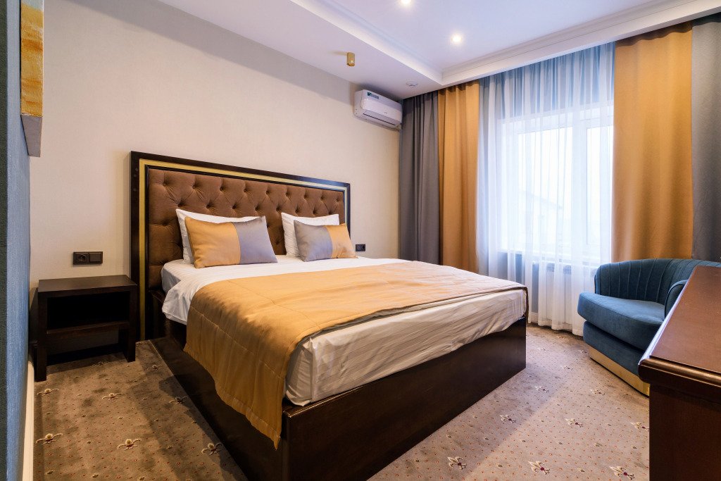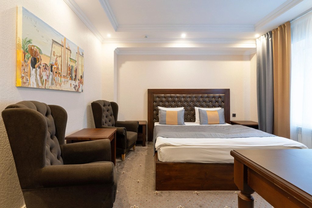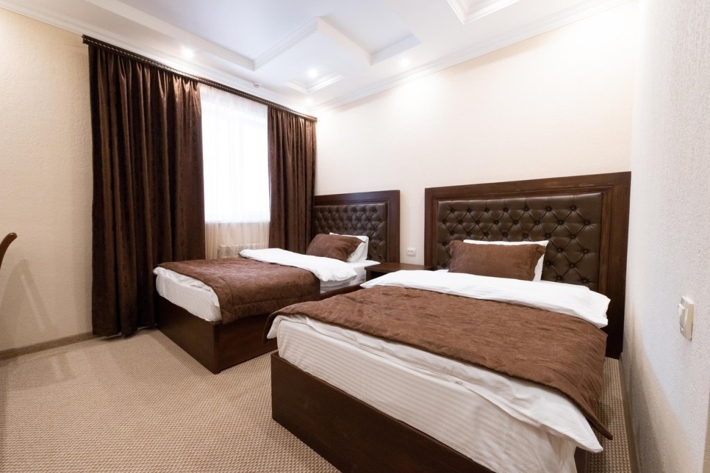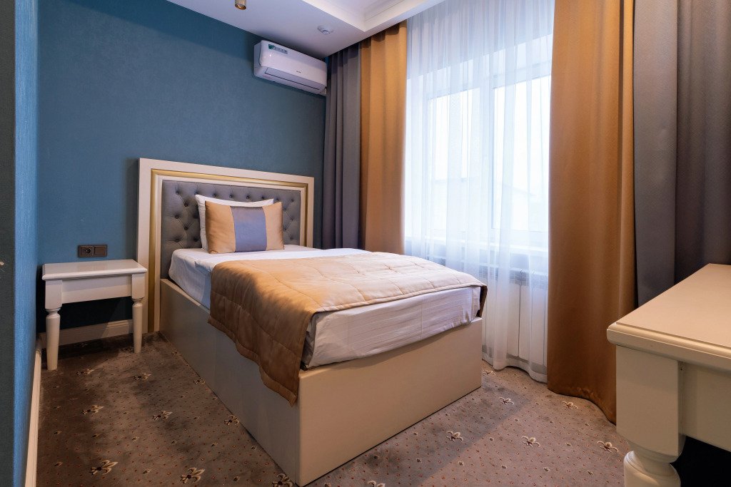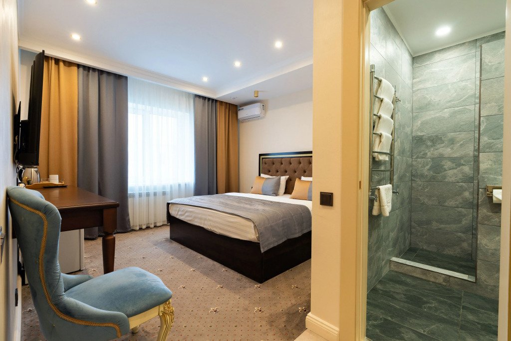 Номер уютно обставлен и оснащён необходимым, чтобы отдохнуть после долгого и насыщенного дня. Имеются телевизор. Оснащение зависит от выбранной категории номера.