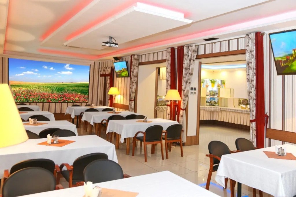 Скоротать вечер или приятно провести время перед сном в уютной атмосфере можно в баре. Время вспомнить о хлебе насущном! Для гостей работает ресторан. Для любителей кофе и перекусов открыто кафе. Предусмотрены разные типы питания: полный пансион и полупансион.