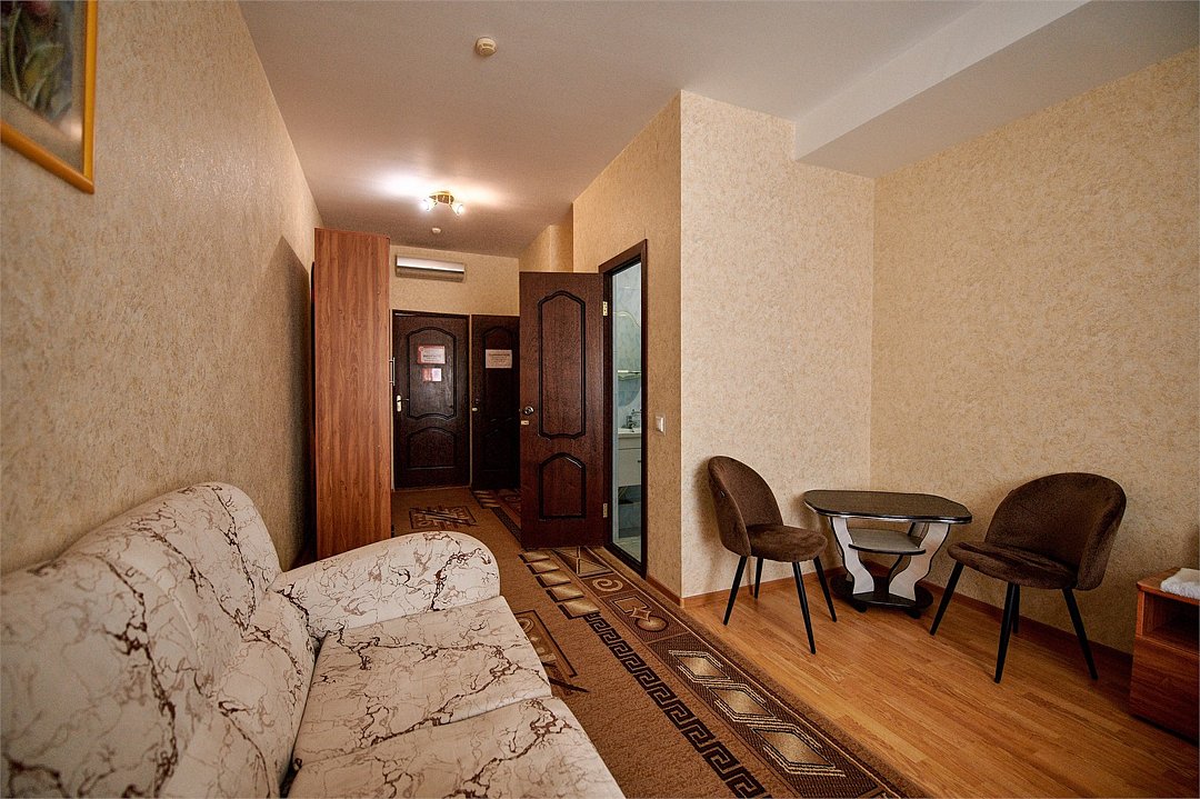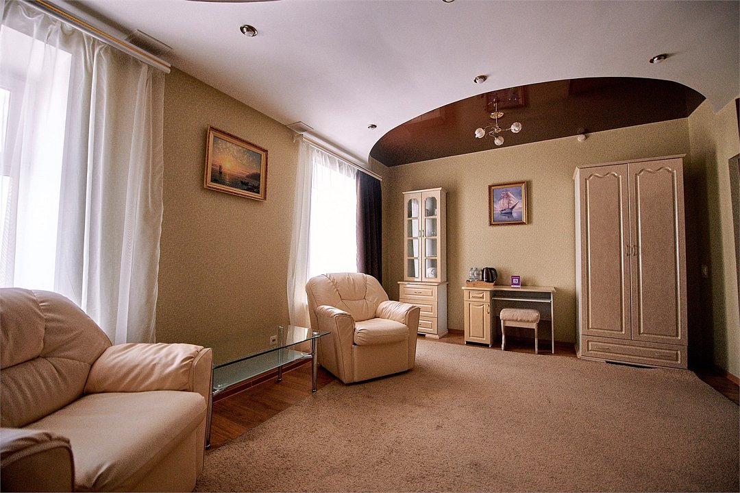 Просторный номер категории полу-люкс с гостиной, в которой можно отдохнуть и принять гостей.Услуги и удобства