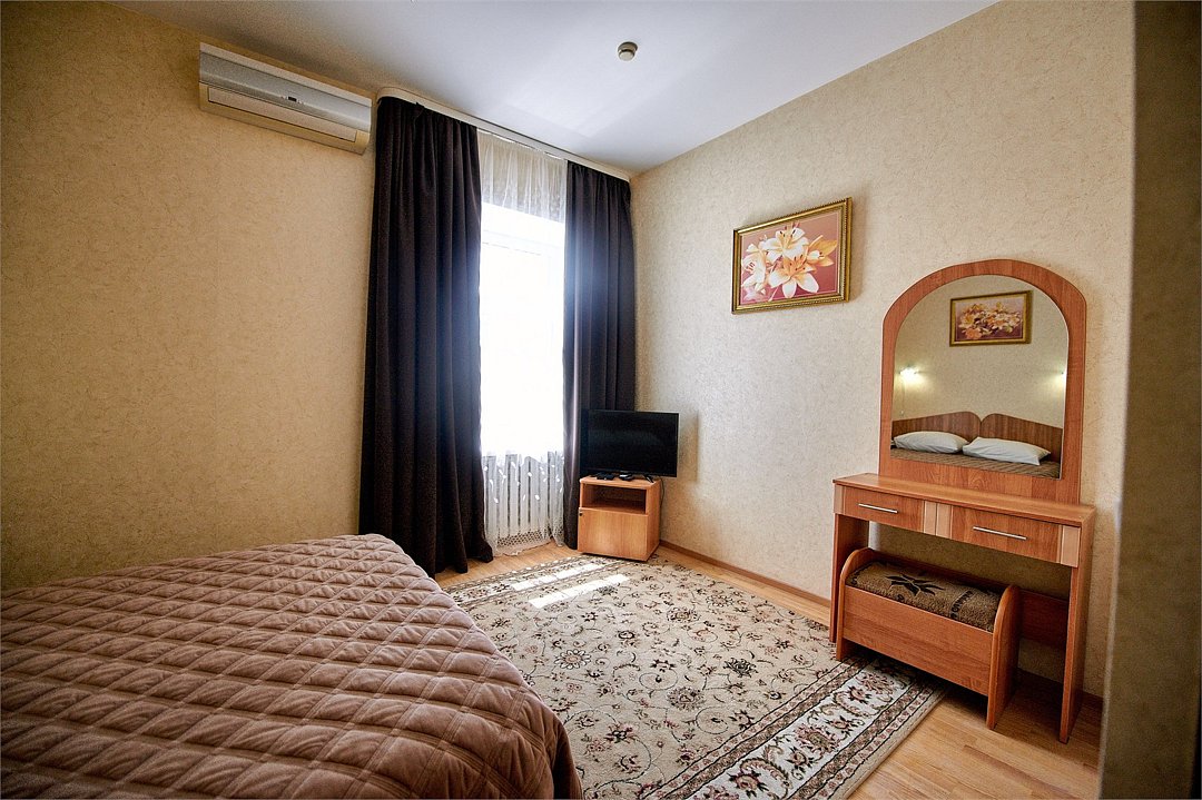 Wi-Fi, телефон, кондиционер, светильник, фен, ванная комната, душевая кабина, санузел, банные полотенца, тапочки, гигиенические средства, двуспальная кровать, тумбы, стулья, шкаф для одежды, вешалки, письменный стол, багажная тумба, зеркало, ковер, обслуживание номеров, унитаз, ковровое покрытие, отопление, душ, вид на город, вид во двор, стаканы, стул, стол, туалет, цифровое тв, внутренний телефон, телевизор с плоским экраном, мини-холодильникВ номере