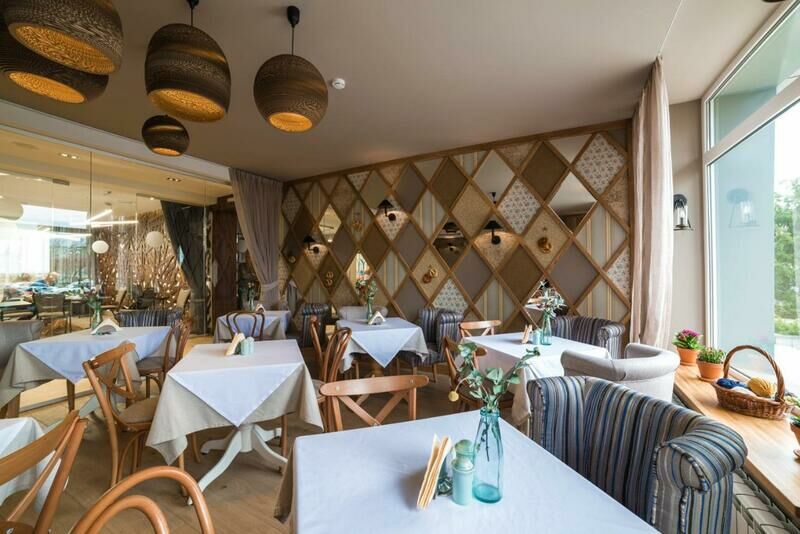 Кафе с авторским дизайном, панорамными окнами и большой летней верандой.
