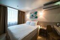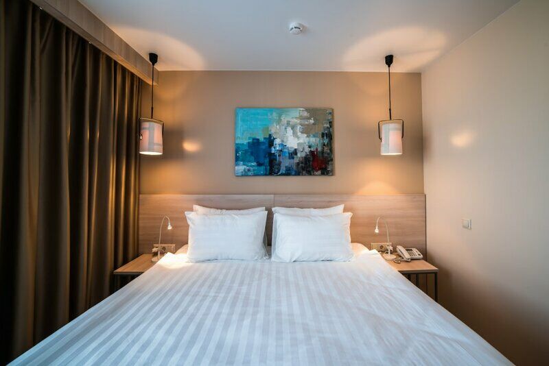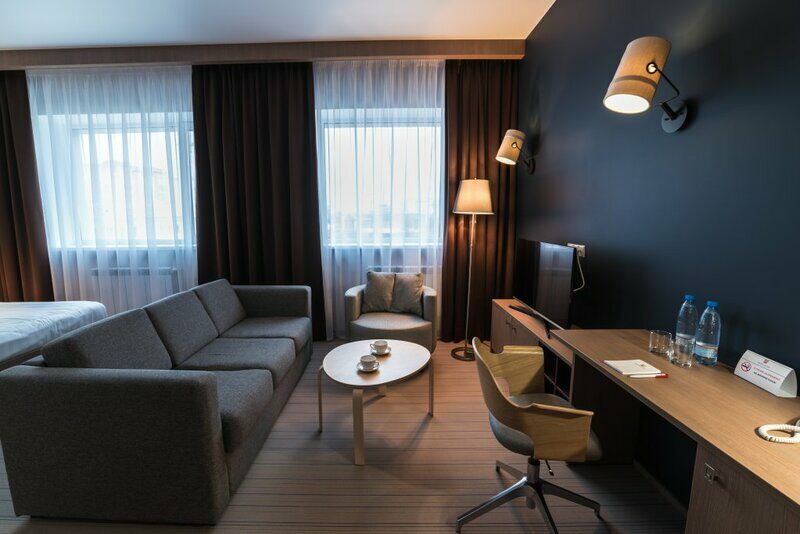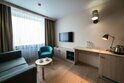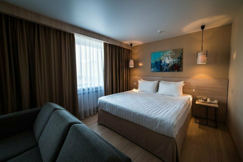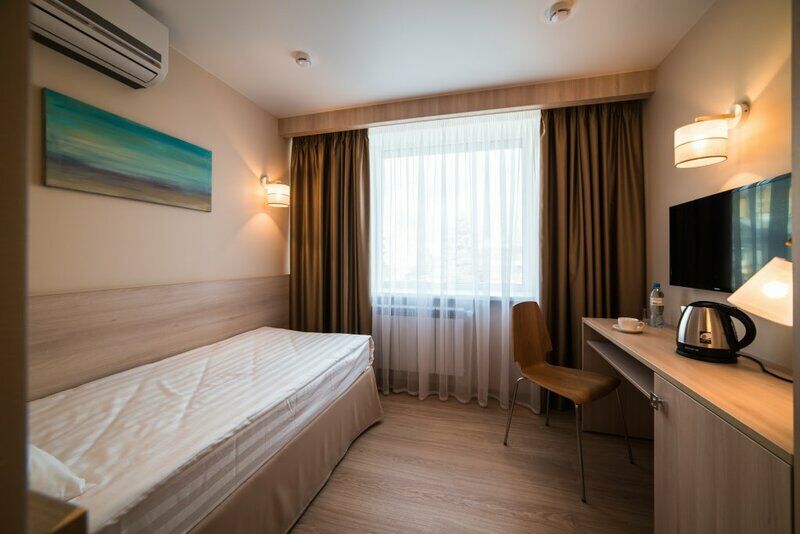 Путешествие в одиночкуОтличное место остановкиОтличный современный отель для остановки при путешествии в Тамбов. Самый центр Тамбова. В номере ничего лишнего, но все что необходимо: сейф, минихолодильник, телевизор, чайный сет, каждый день бутылка воды, достаточно удобная кровать, фен, гигиенический набор - гель для душа, шампунь, мыло - каждый день обновляется, тапки, комплект полотенец (качество так себе). Отличные завтраки - качественные и вкусные. Реальный недостаток - окна нечетных номеров выходят на центральную улицу, даже ночью шум автомобилей (при закрытом окне терпимо). Рекомендую для остановки