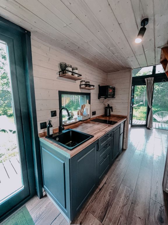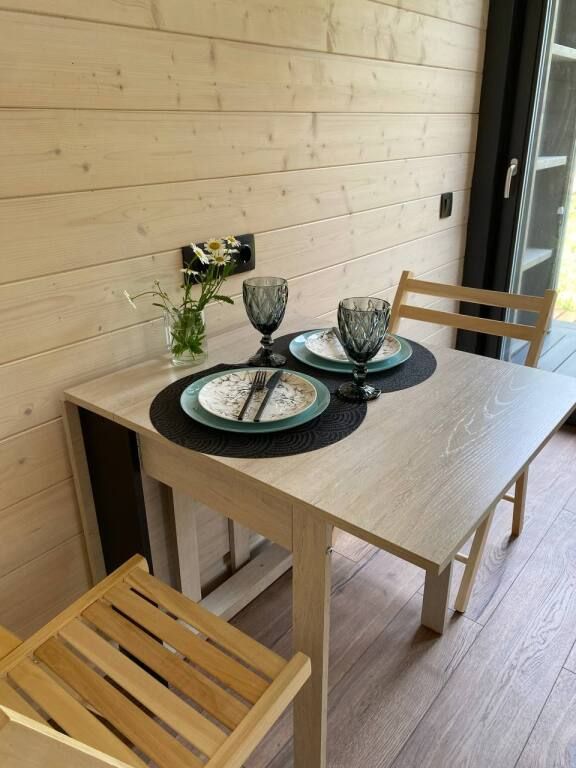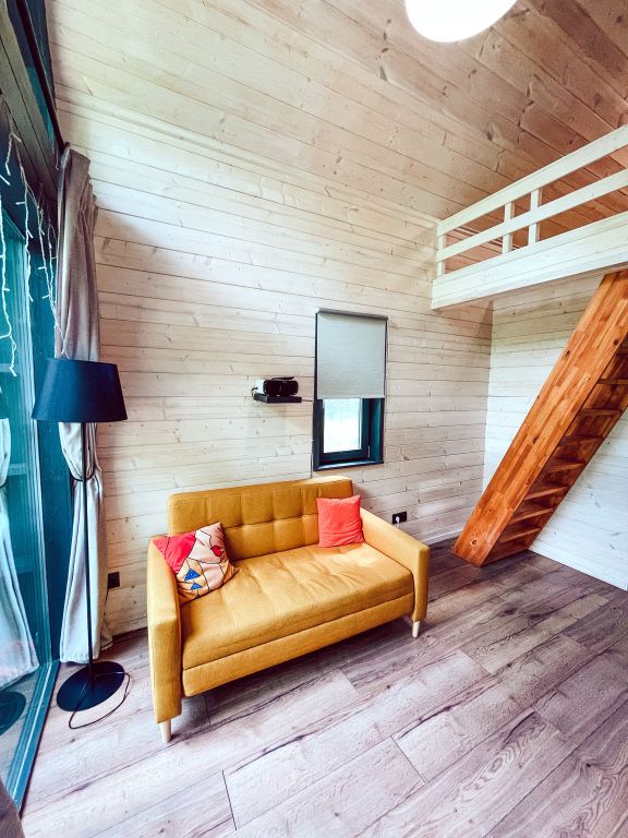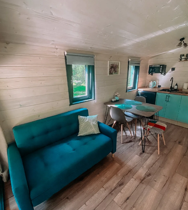 Каждый из трех домиков глэмпинга рассчитан на 3 взрослых или 2 взрослых и двое детей до 7 лет.