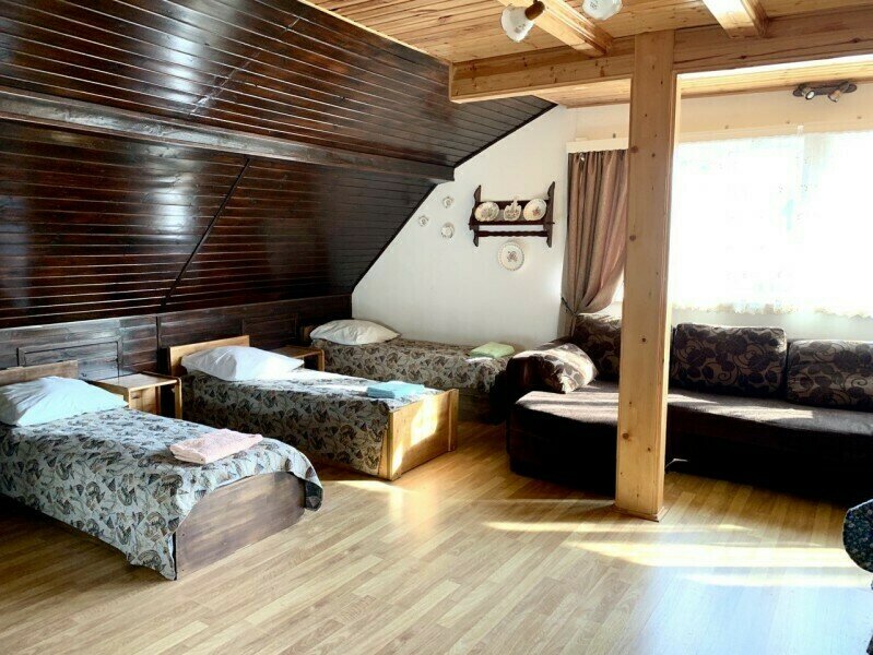 авг. 2022 г.Вместились всей семьейЖили в большой мансарде типа Лофт на втором этаже.