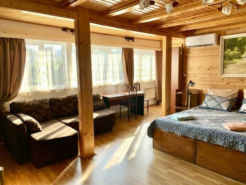 Для размещения предлагаются комнаты стандартной категории с двуспальной или раздельными кроватями. Также есть вариант семейного размещения, в студии и коттедже. Каждая комната оснащена чайником, холодильником, телевизором и бесплатным Wi-Fi. В доме есть общая кухня-столовая с газовой плитой, микроволновой печью и всем набором посуды.