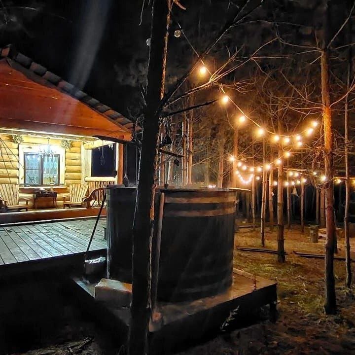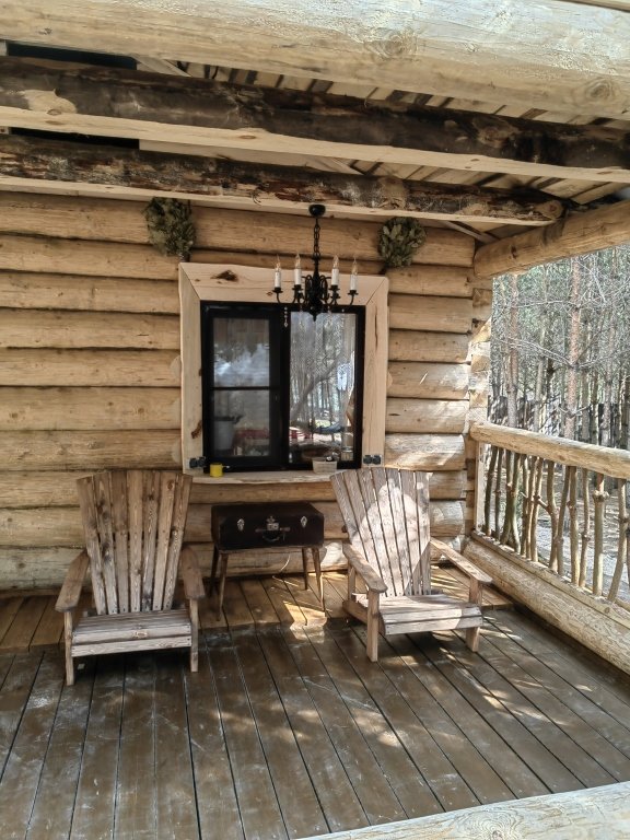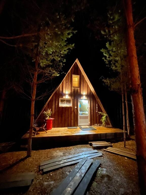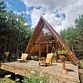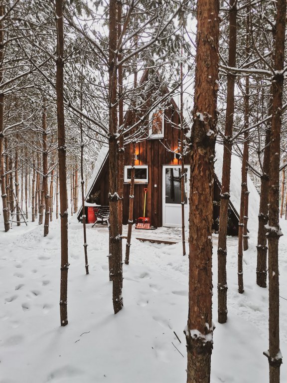 Гостевой домик a-frame в сосновом лесу на отдельной территории.