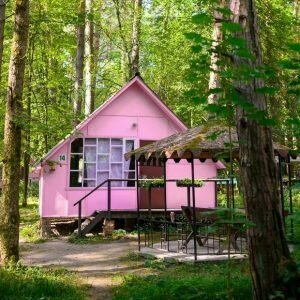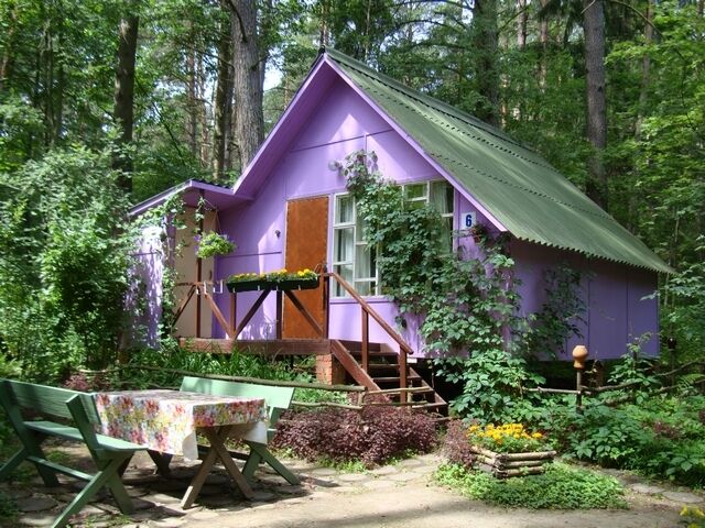 Домики для проживания и большая часть зданий построены из натуральных экологичных материалов. Тропинки между зданиями выложены кольцами (спилами) сосновых бревен. Ближайшая автомобильная трасса находится на удалении, гарантируя экологичный отдых и наслаждение девственной природой. Территория базы отдыха занимает 6 гектаров.