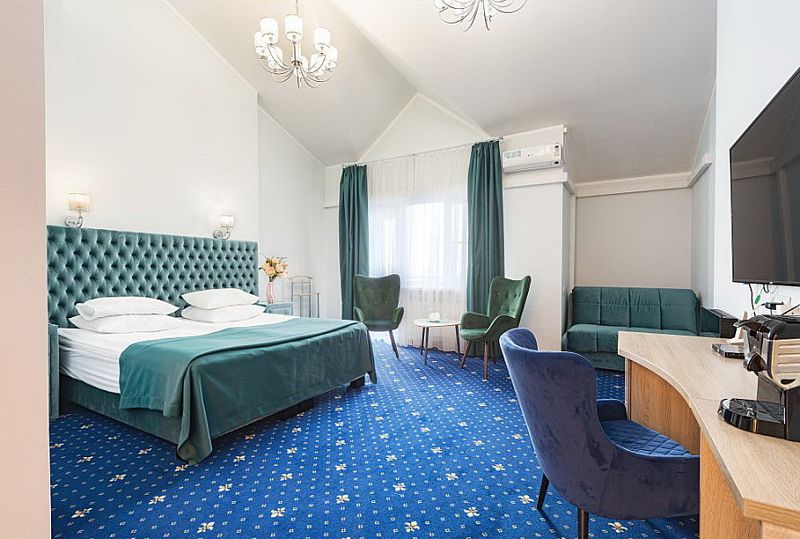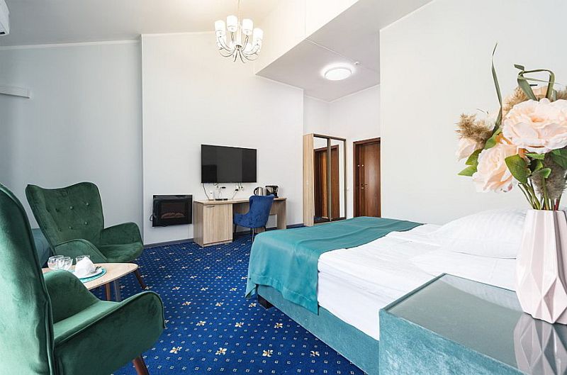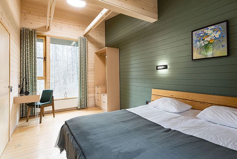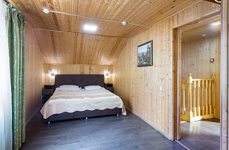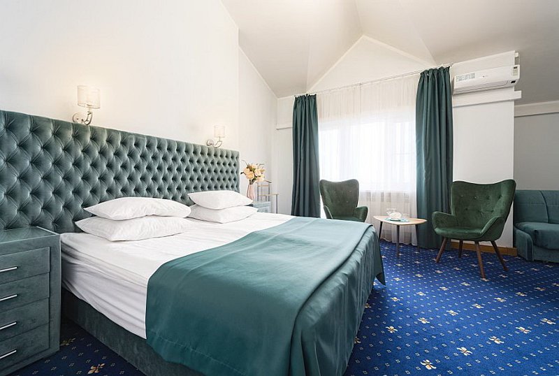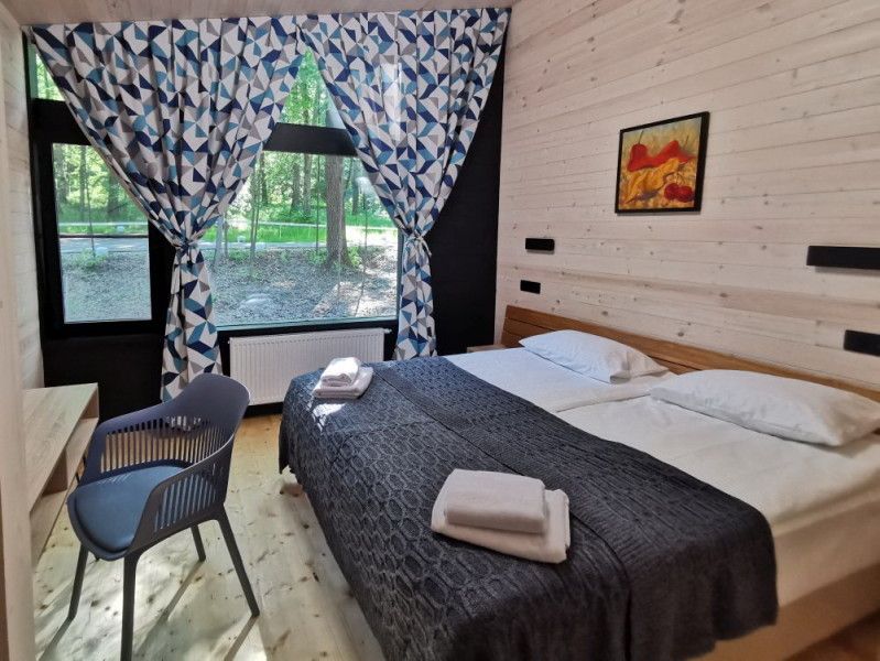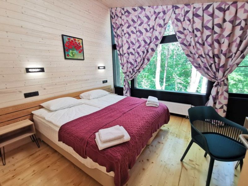 Двухместный номер с большой кроватью, со всеми удобствами и видом на лес и парк.