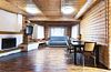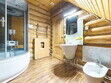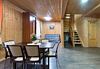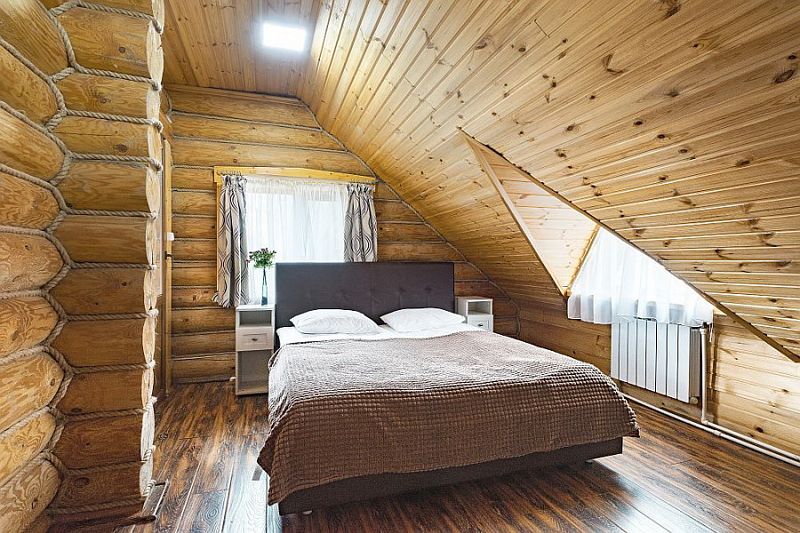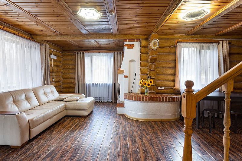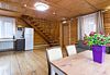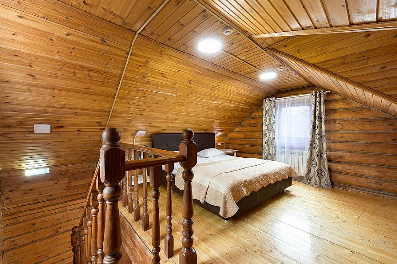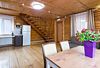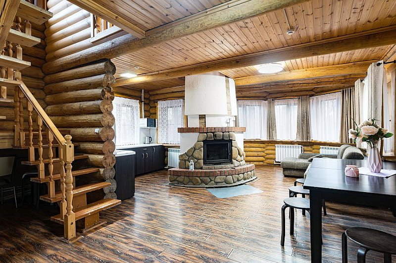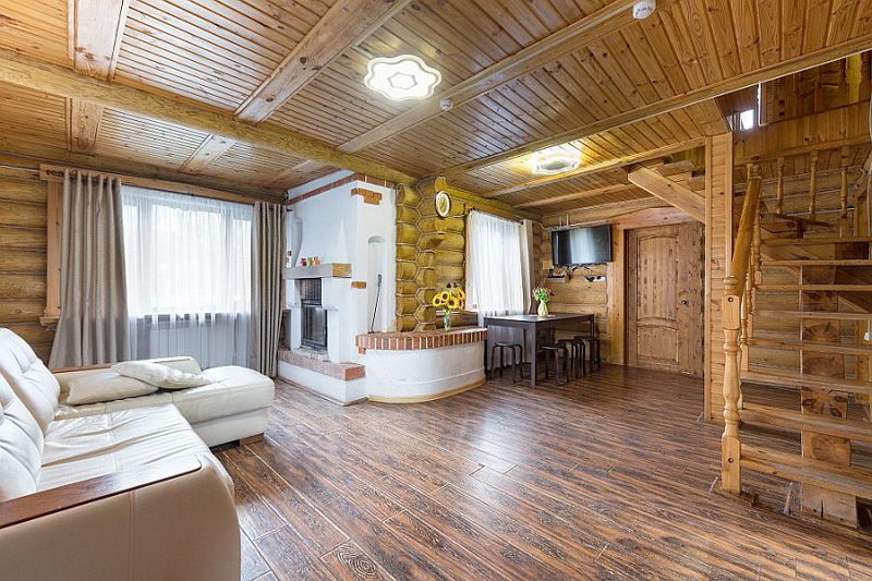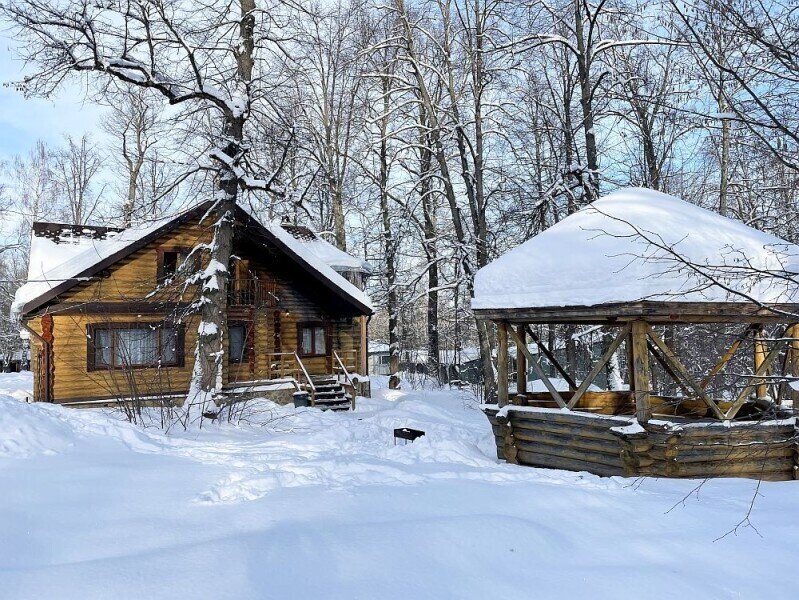 Коттедж имеет большой гостиный зал с камином, кухню, два санузла. На втором этаже расположена просторная спальня. Около коттеджа освещаемая беседка со столом и лавочками, а также мангал.