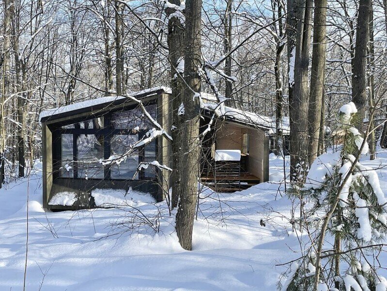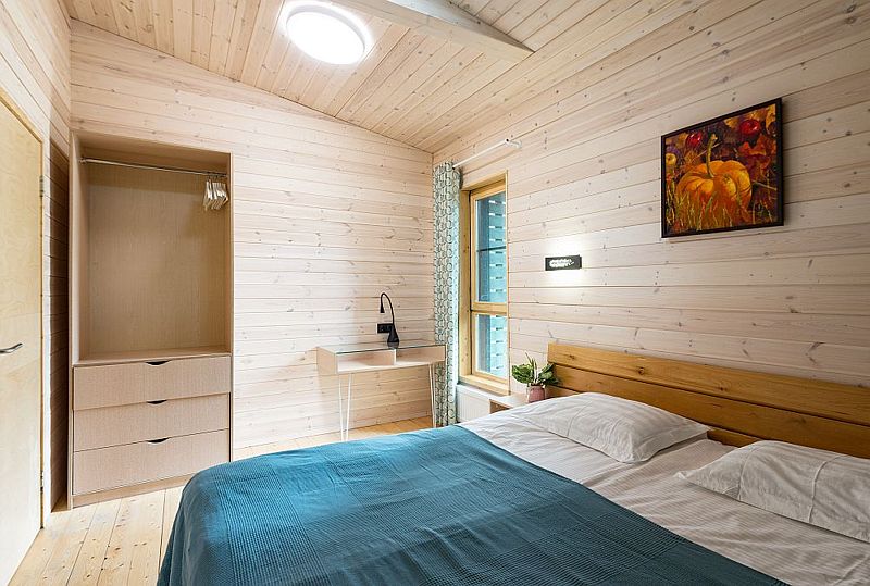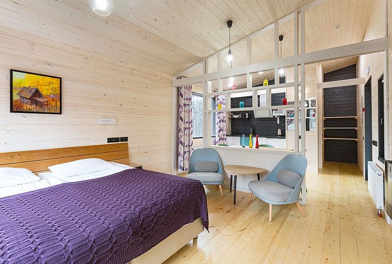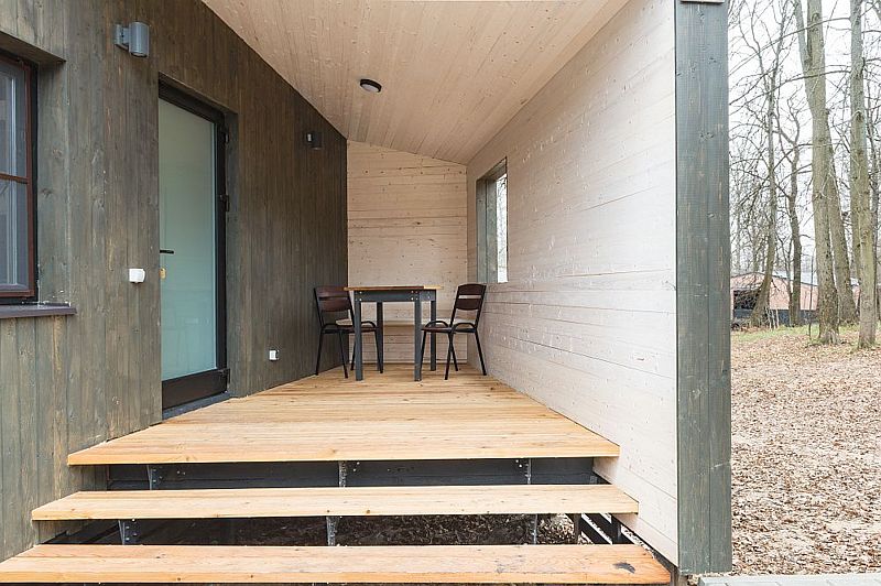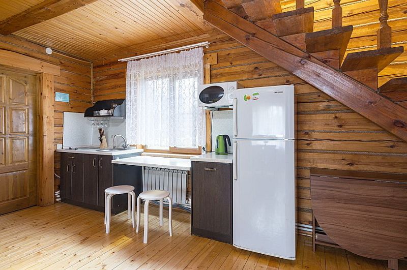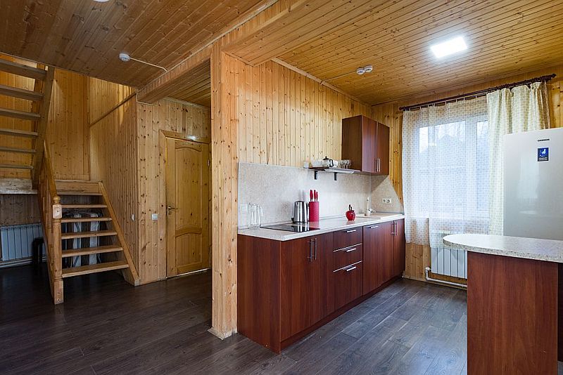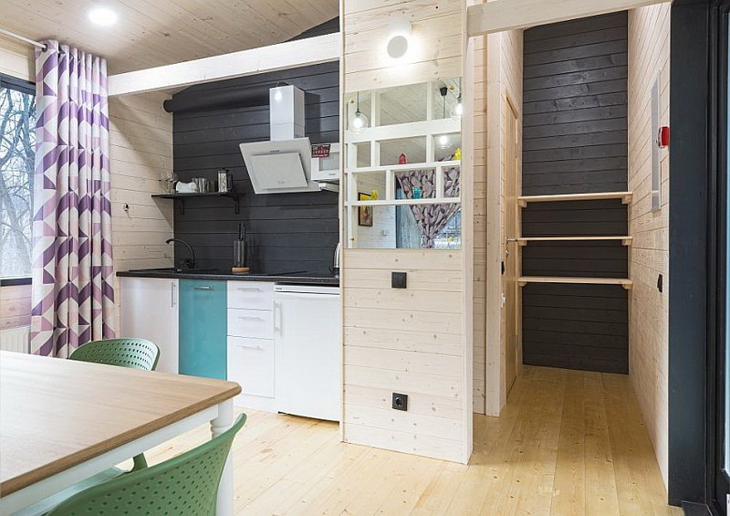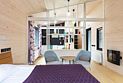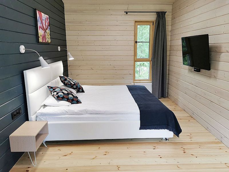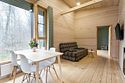 Коттедж в скандинавском стиле, имеет одну спальню и гостиную, кухню и террасу, рядом на открытой площадке мангал. Коттедж сдвоенный и состоит из двух половинок, разделенных между собой техническим помещением. Доступна услуга хранения багажа.