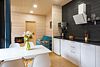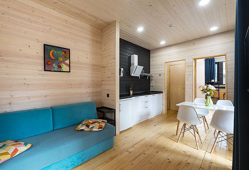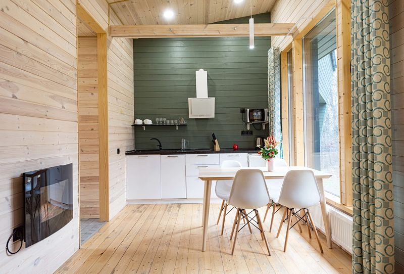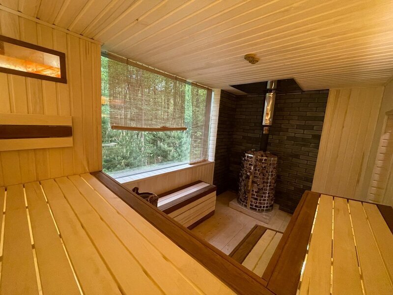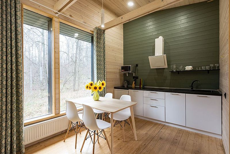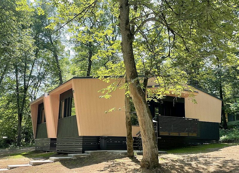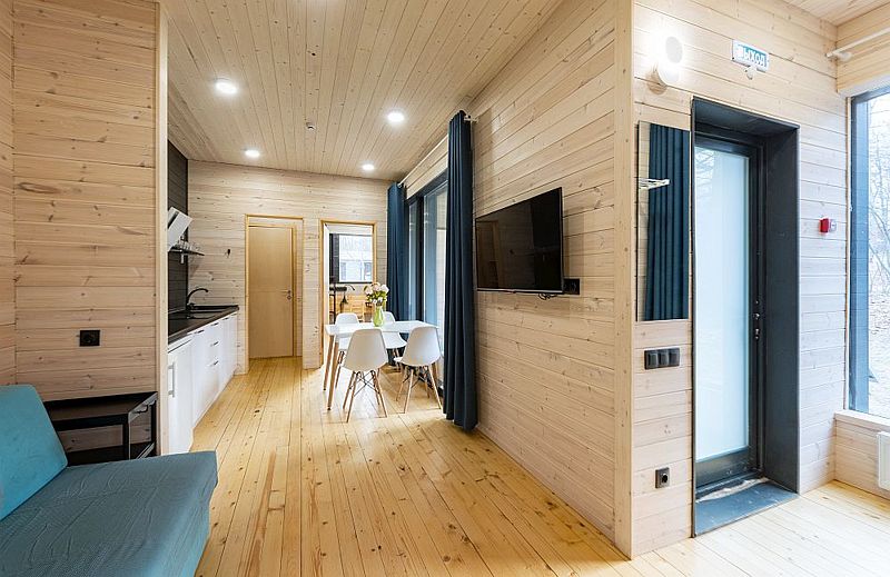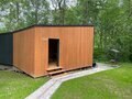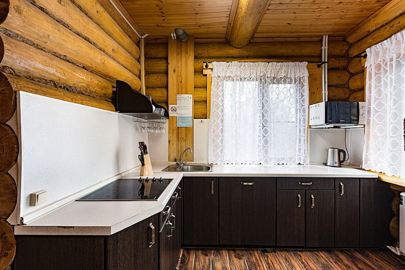Коттедж в скандинавском стиле, имеет одну спальню и гостиную, кухню и террасу, рядом на открытой площадке мангал. Коттедж сдвоенный и состоит из двух половинок, разделенных между собой техническим помещением. Доступна услуга хранения багажа.