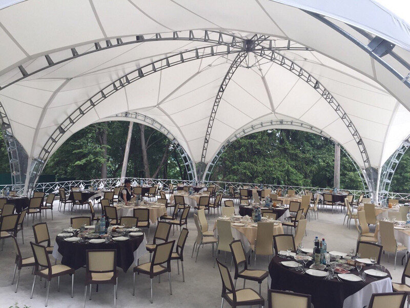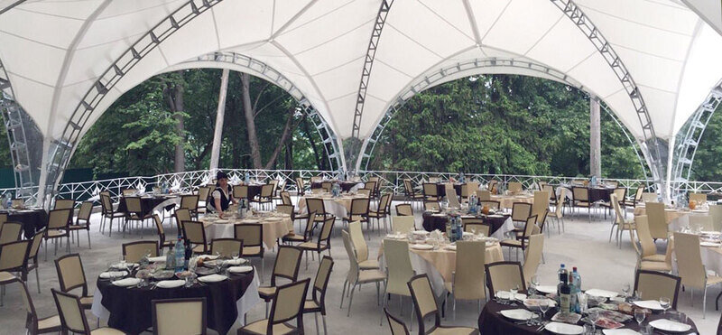 На Цветаевской площадке расположен шатер-павильон площадью 300 м2, открывающий вид на реку Оку. Вмещает до 150 человек в банкетной рассадке. Этот просторный шатер может быть арендован для выездной регистрации, мероприятий без питания или для проведения банкетов для 100 человек и более. Стоимость аренды для выездных регистраций — от 10000 ₽.