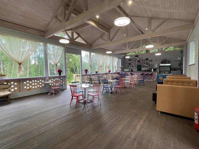 Читать полностьюНа веранде, современной, уютной и с видом на парк, площадью в 140 квадратных метров, есть возможность разместить до 60 человек в формате банкета. Отличное место для организации банкетов в период с мая по сентябрь. Веранда выполнена в светлых романтических тонах, имеет барную зону, окружена парком, декорирована живыми растениями.