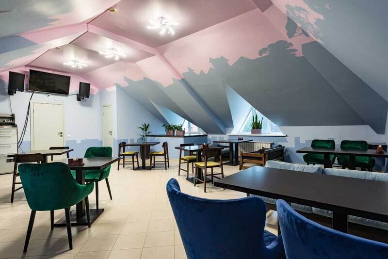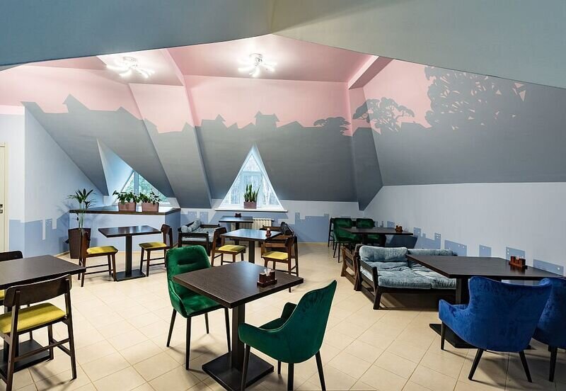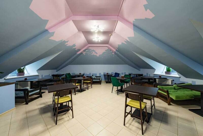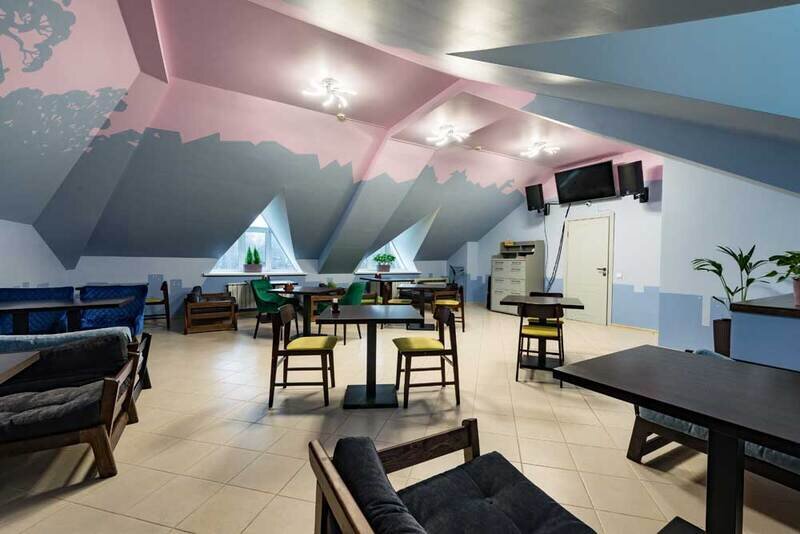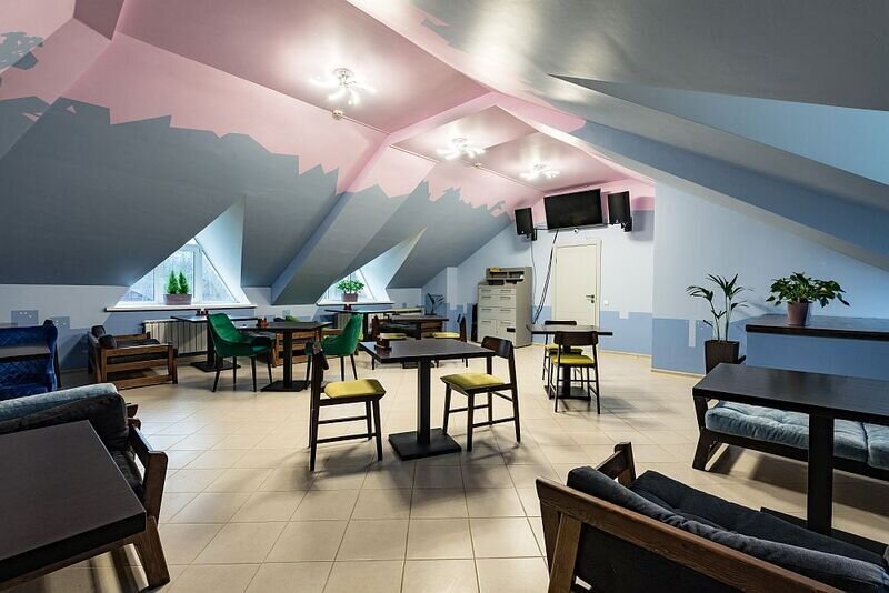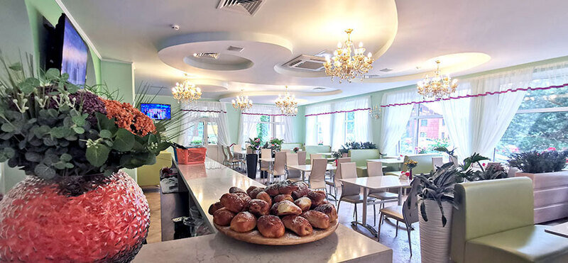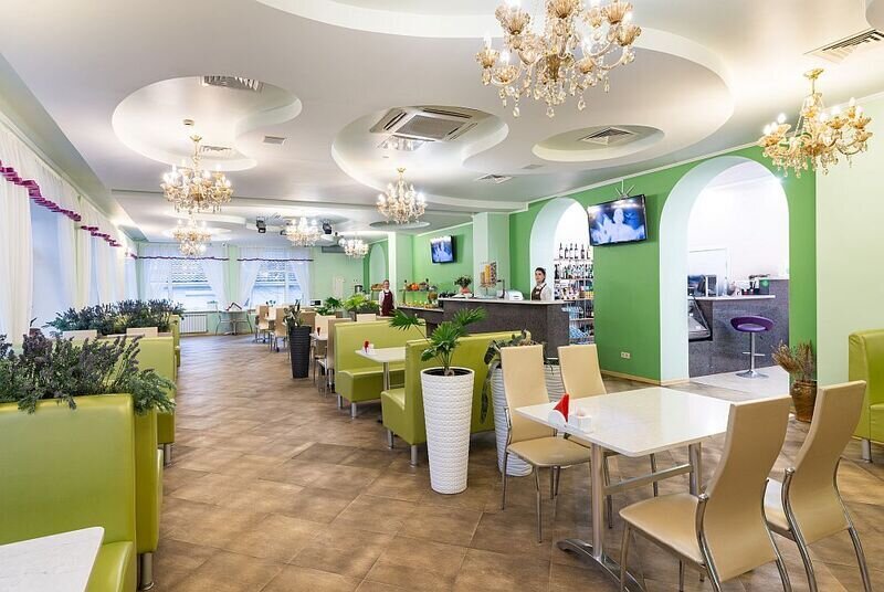 Просторный ресторан площадью 180 м2, расположенный в административном здании, вмещает до 80 человек в банкетной рассадке. Оснащение: телевизоры, проектор, музыкальная и светомузыкальная аппаратура.