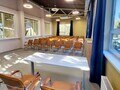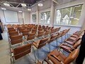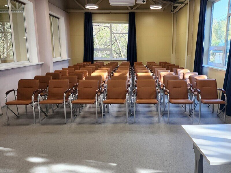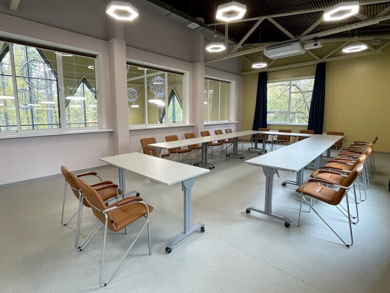Читать полностьюНа втором этаже досугового центра располагается конференц-зал площадью 70 м2 с панорамным остеклением. Вместимость зала 20-80 человек. Он подходит для проведения различных мероприятий, таких как конференции, семинары, переговоры, групповые занятия йогой и кинопоказы. В здании имеется гардероб, санузлы и бар. Также возможна организация кофе-брейков и фуршетов для гостей. В зале есть техническое оборудование: проектор с экраном, музыкальная аппаратура, микрофон и флипчарт со сменными листами.