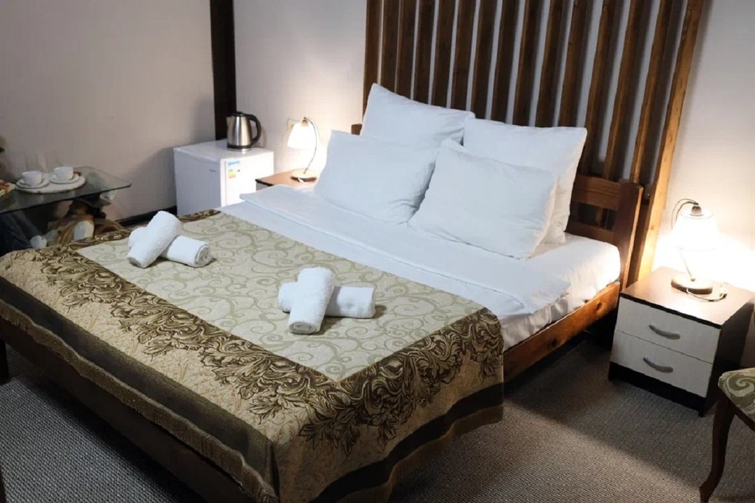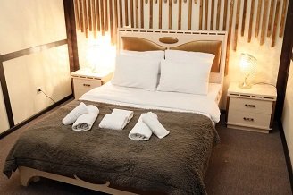 К размещению гостей представлены комфортные номера различных категорий. Все они очень уютные и оборудованы удобными спальными местами, качественной мебелью и телевизором. В собственной ванной комнате обязательно есть набор свежих полотенец и средства личной гигиены.