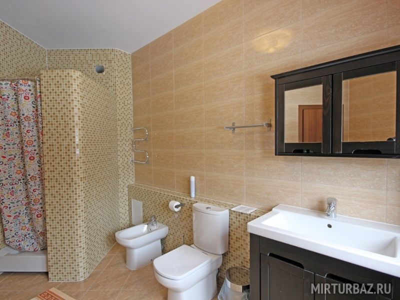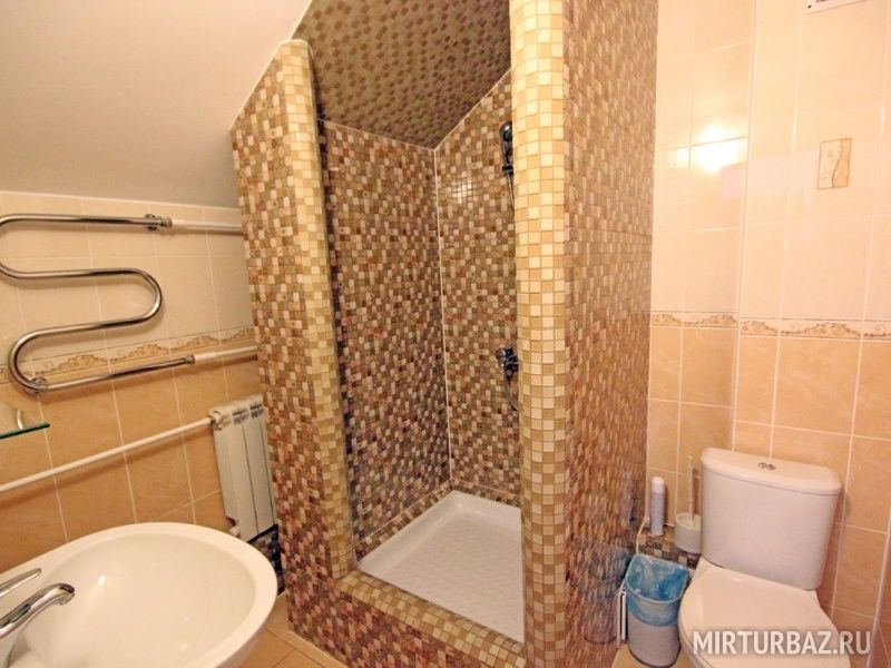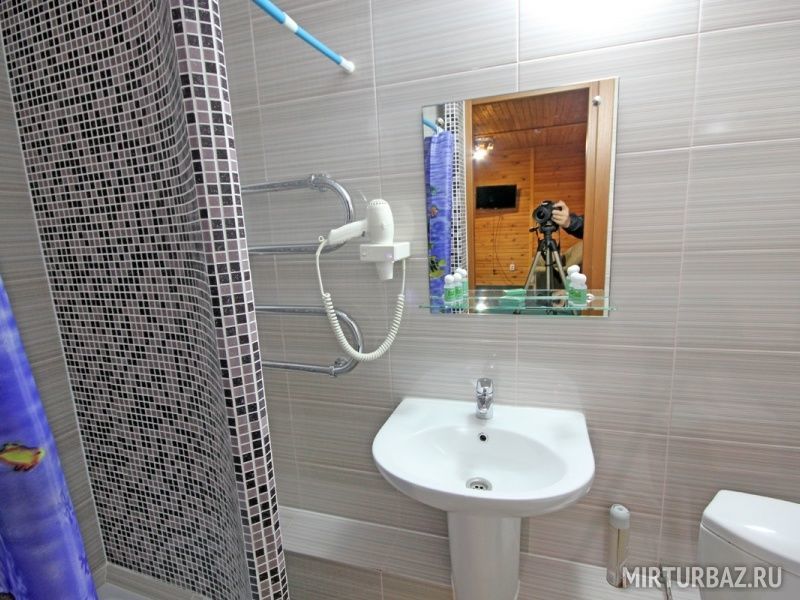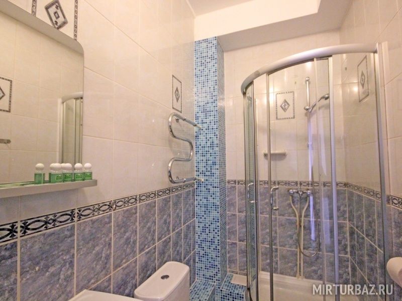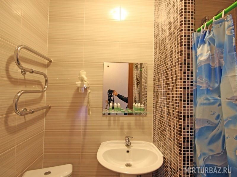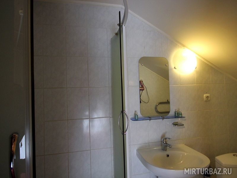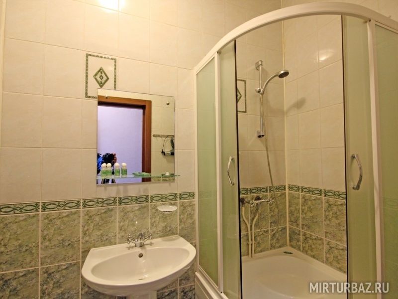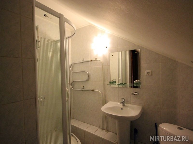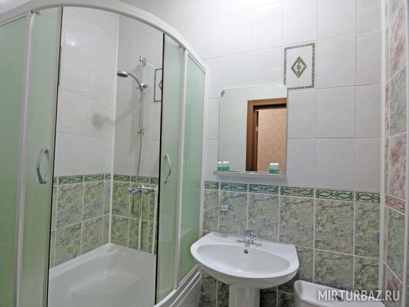 В номерах туалетная комната с душевой кабиной, феном, средствами гигиены.