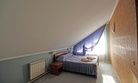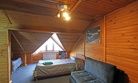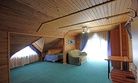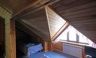 Общая площадь — 30,8 м² (два окна, маленькое окно на дорогу, «Берлогу», большое окно до пола выходит вниз на дорогу). Две односпальные кровати и диван.