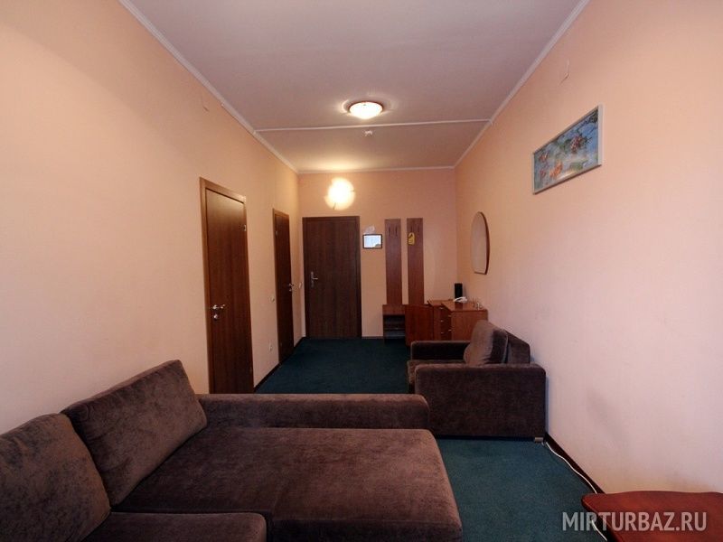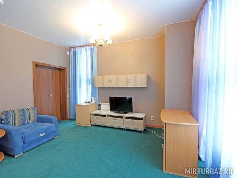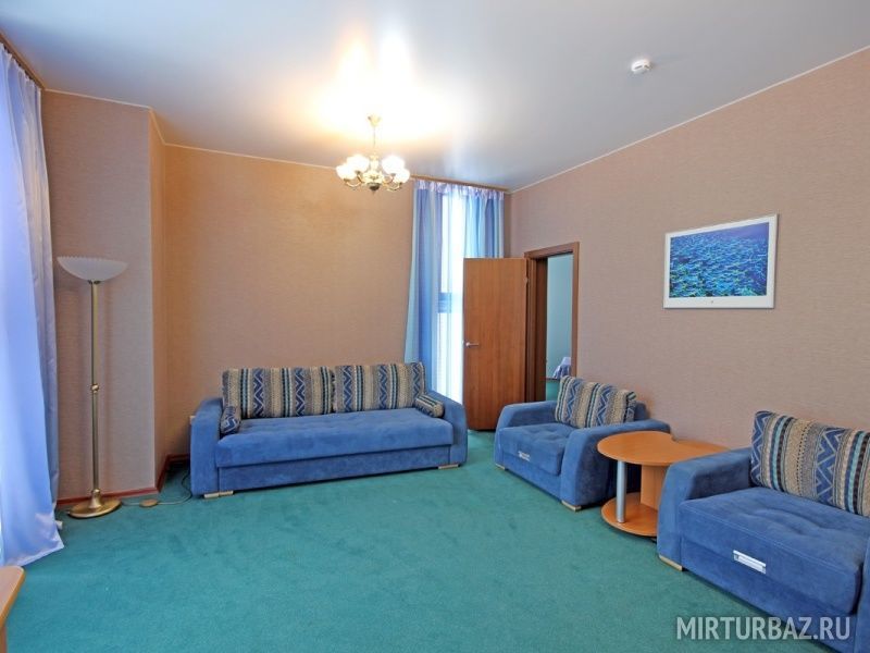 Двухкомнатные номера категории Люкс рассчитаны на размещение до шести гостей (два основных места + до четырех дополнительных).