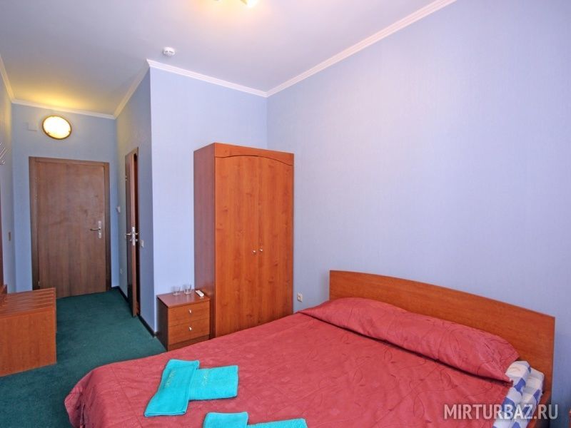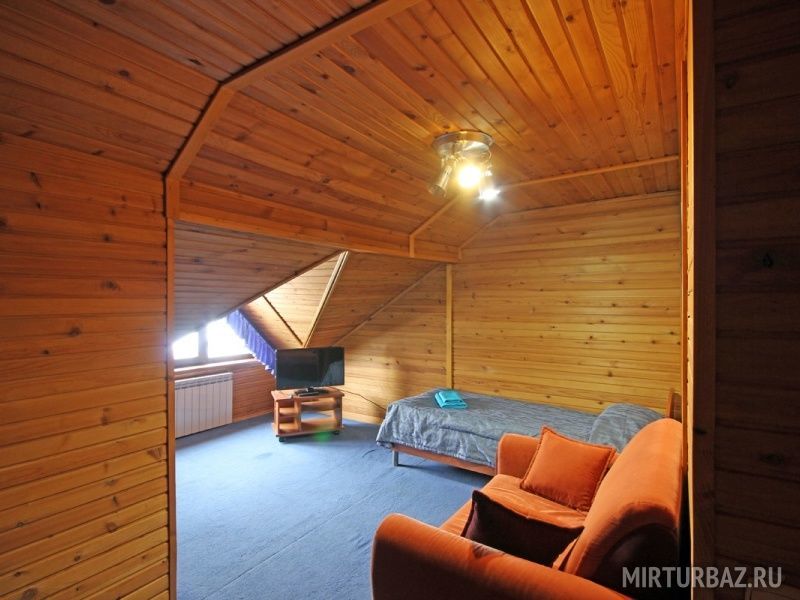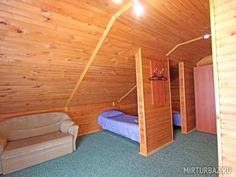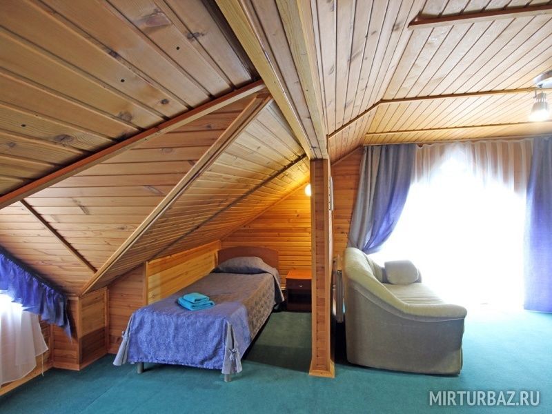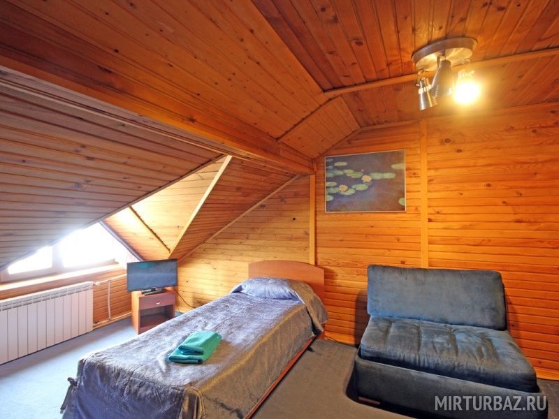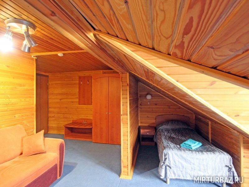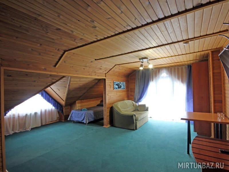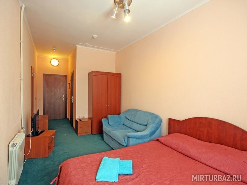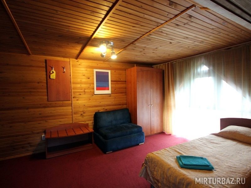 Общая площадь 24,2 м² (окно на дорогу, «Берлогу»). Две односпальные кровати, раскладной диван, тумбочка, шкаф, телевизор. Санузел.
