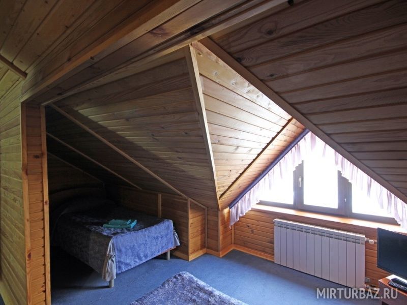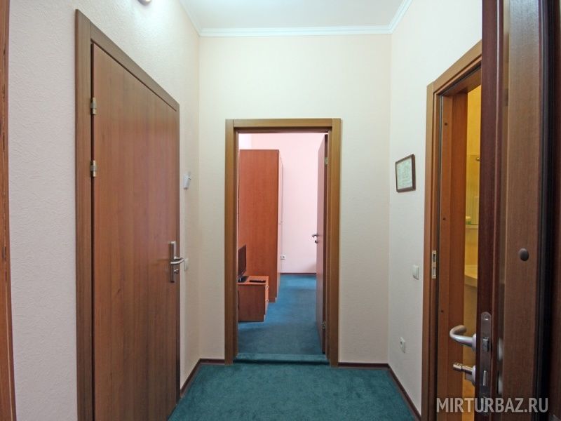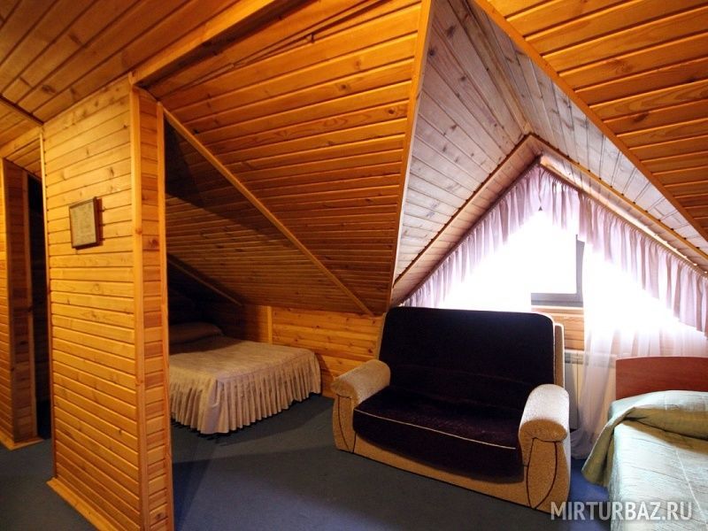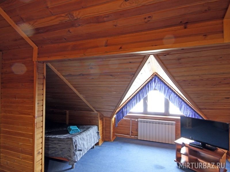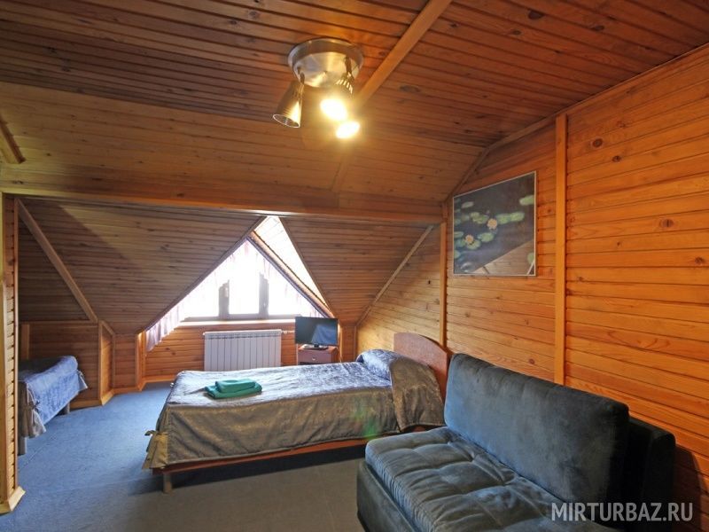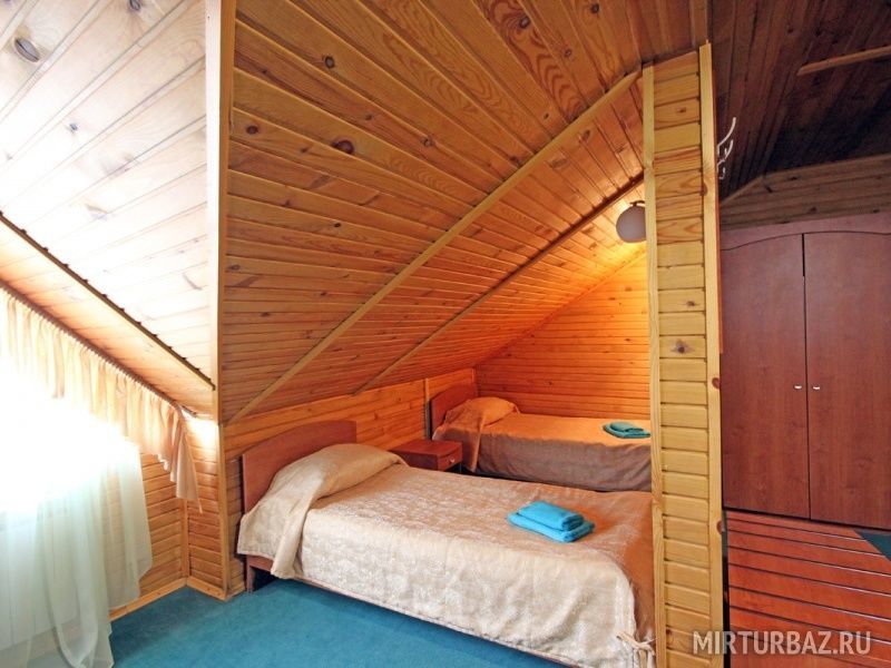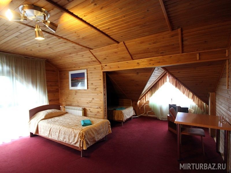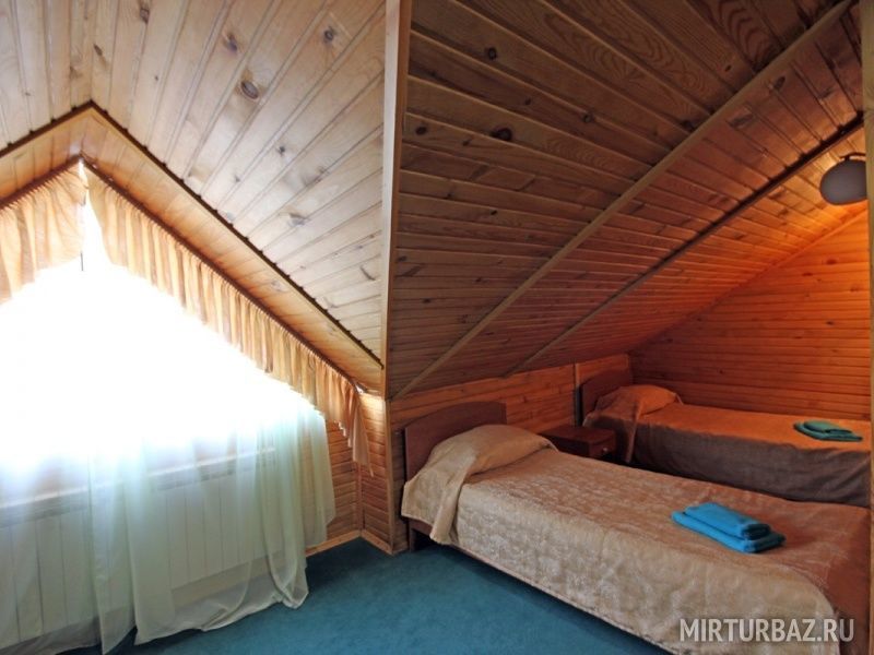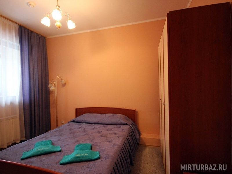 Общая площадь 24,2 м² (окно на дорогу, «Берлогу»). Две односпальные кровати, раскладной диван, тумбочка, шкаф, телевизор. Санузел.