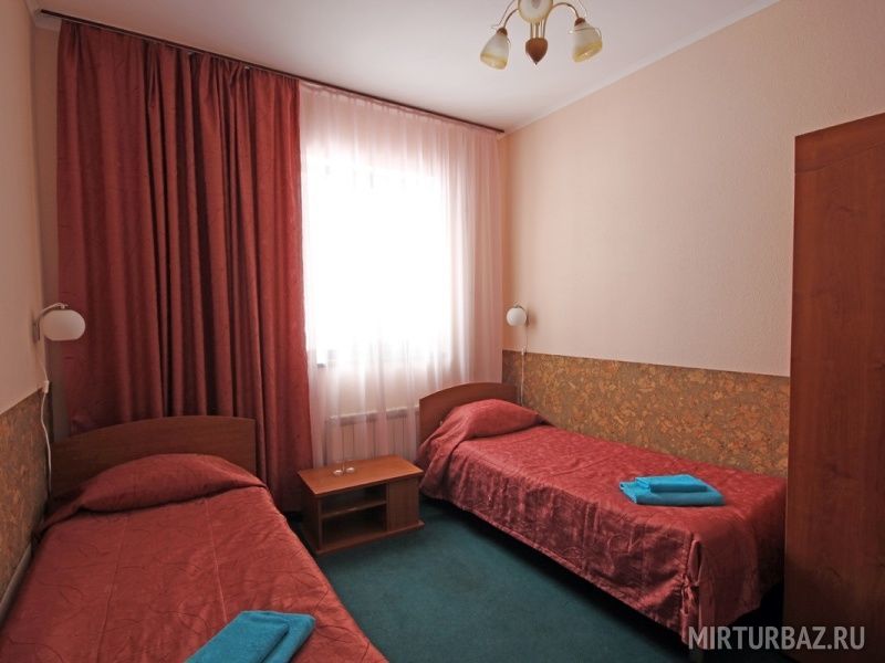 Общая площадь — 25,5 м² (окно на дорогу, «Берлогу»). В номере две односпальные кровати и кресло-кровать.