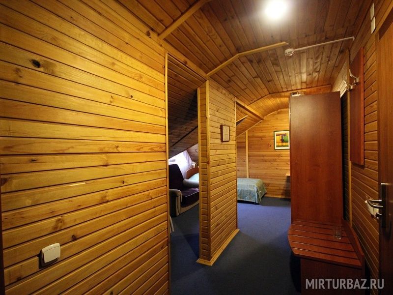 Общая площадь — 30,6 м² (окна на стоянку и «Лапландию»). В номере четыре основных места с возможностью разместить одного гостя дополнительно на раскладушке. Актуальную стоимость проживания вы