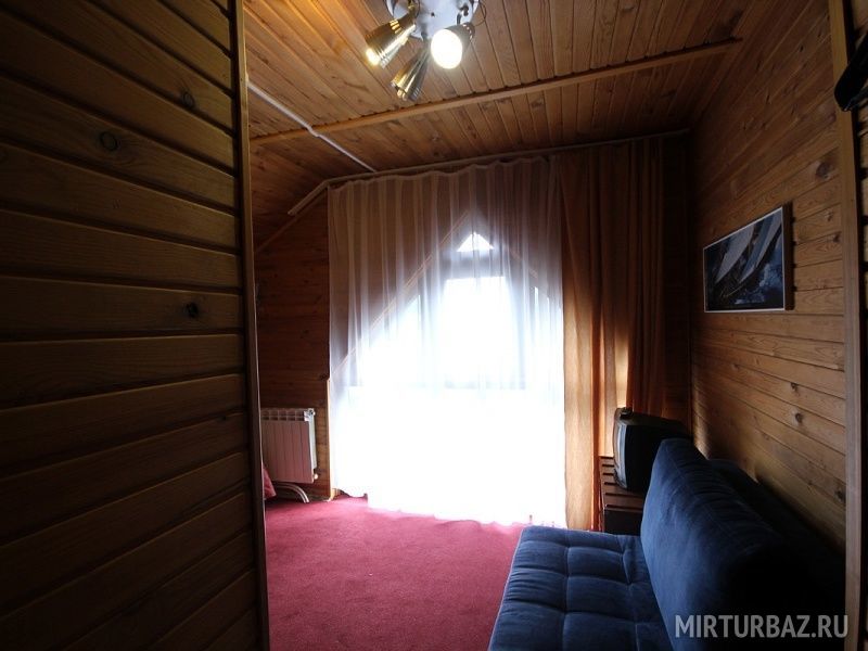 Общая площадь — 36,0 м² (окно на «Ольгу», «Кубу» и трассы, «Мустаг», «Фристайл», «Горнолыжник», прокаты). В номере две односпальные кровати, диван и кресло-кровать.