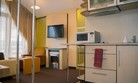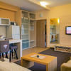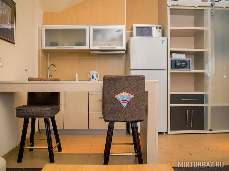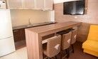 Апартаменты поделены на 3 функциональные зоны: зона отдыха, кухня и спальня.