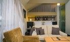 Все номера этого типа включают в себя: обеденную зону с полностью оборудованной кухней (варочная панель , 2-камерный холодильник, СВЧ-печь, набор посуды), обеденный стол, телевизор, телефон, сейф. Комнаты (изолированные и проходные) с односпальными кроватями.