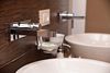 Ванная комната: фен, душевая кабина и большая ванна, косметика, халаты, тапочки.