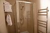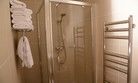 Ванная комната: фен, душевая кабина, косметика, халаты, тапочки.