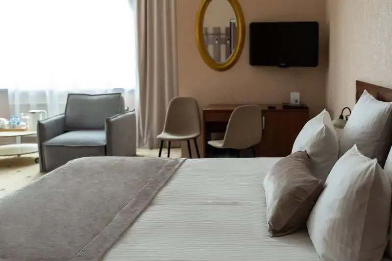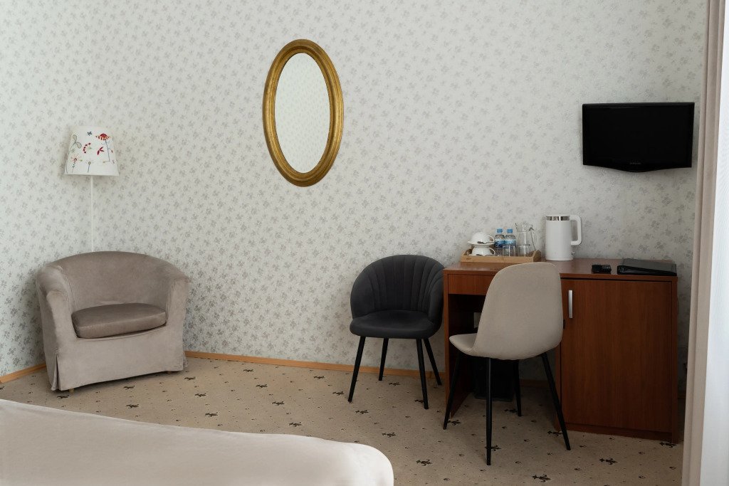 В номере гостей ждут телевизор и халат. Перечисленные услуги есть не во всех номерах.