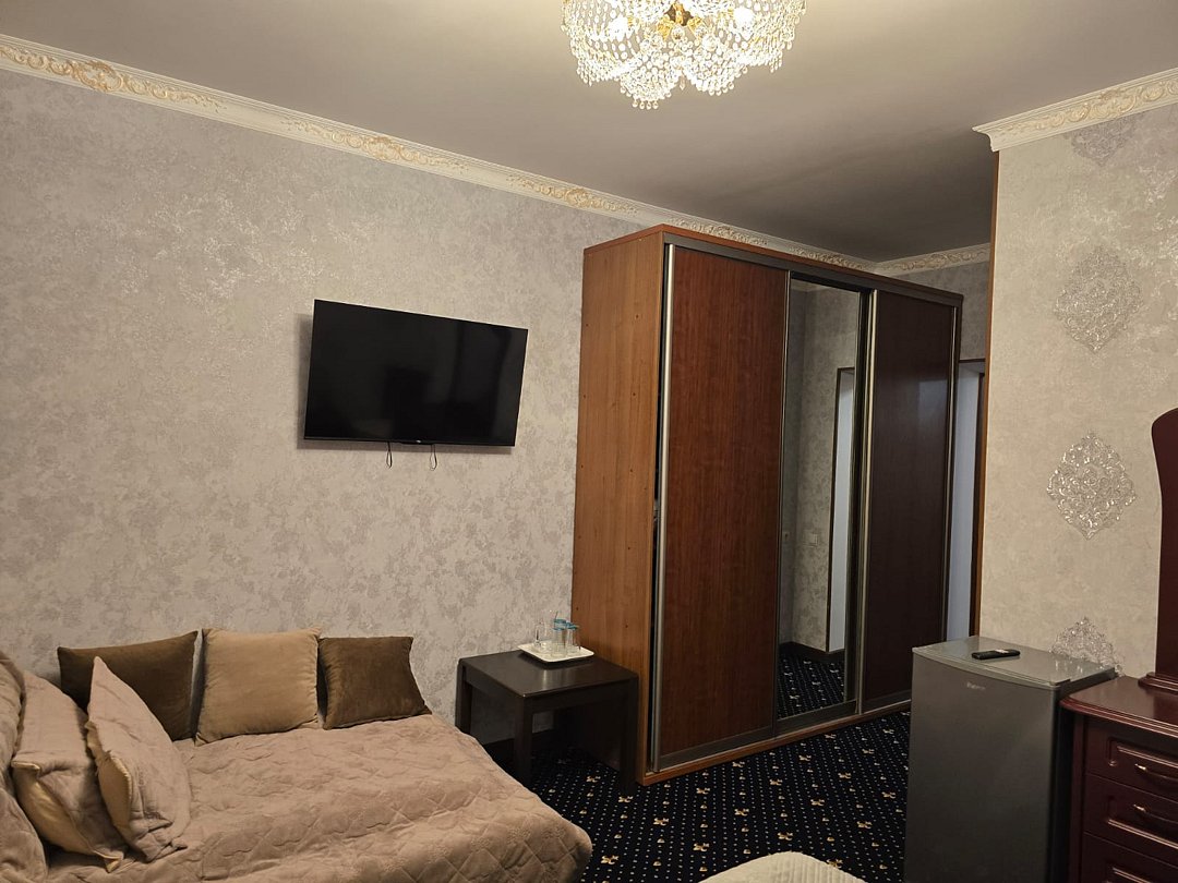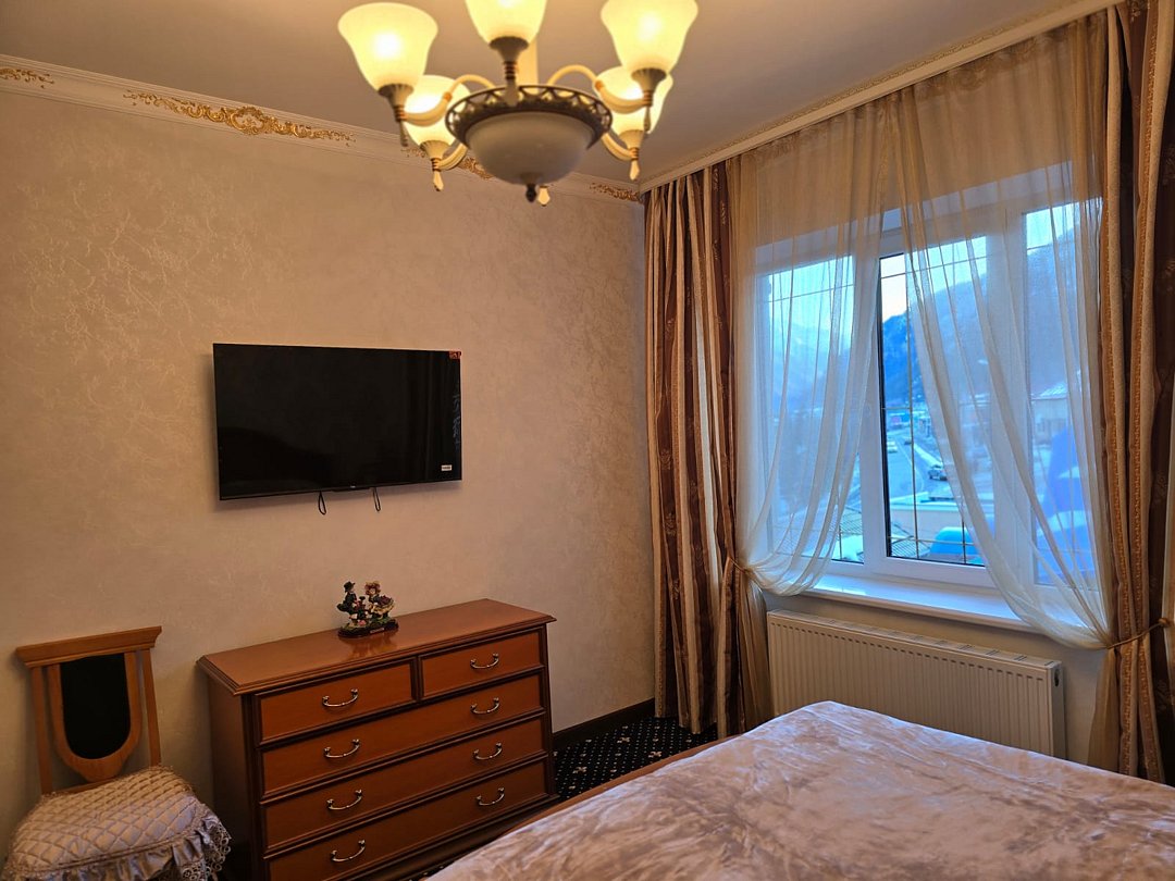 Номера гостиницы, от стандартных до изысканных, предлагают все необходимое для комфортного пребывания. В каждом из них гостей ждут удобные кровати, современные телевизоры, холодильники и чайники, создающие атмосферу домашнего уюта. Бесплатный Wi-Fi и собственные ванные комнаты с душевыми обеспечивают удобство и комфорт на протяжении всего пребывания. Вид на горные пейзажи добавляет особую атмосферу в каждый момент отдыха.