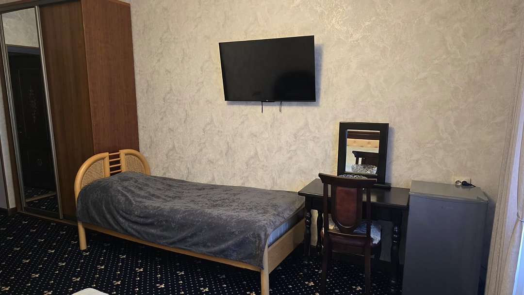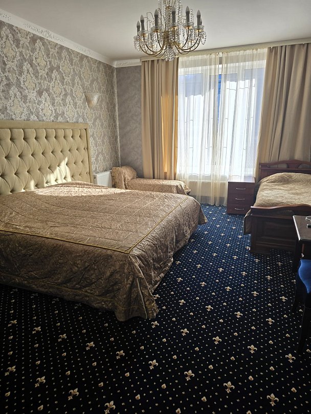 Трехместный стандартный номер площадью 25 м² с видом на улицу и двор подходит для размещения трех человек. Имеет спальню с приятным интерьером. В номере: одна двуспальная кровать king-size, одна односпальная кровать.