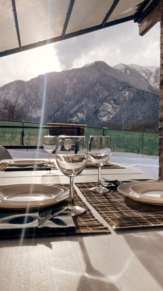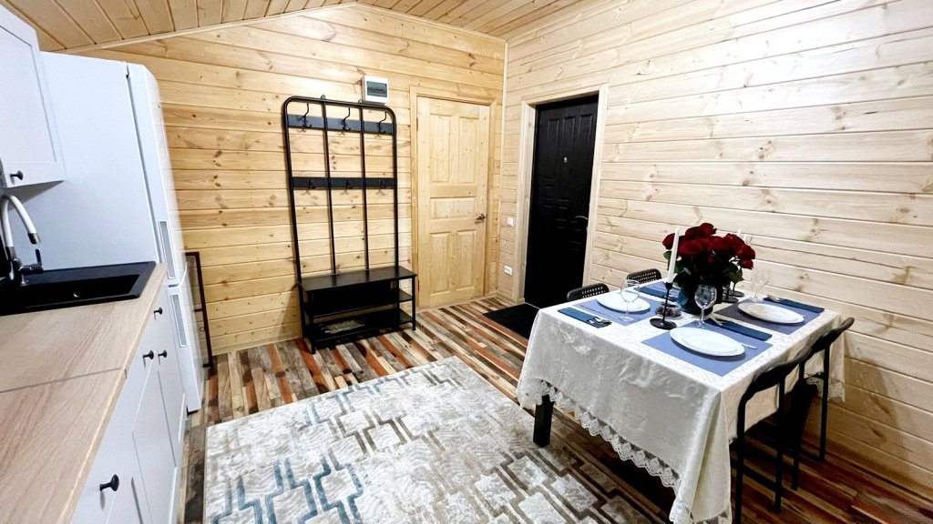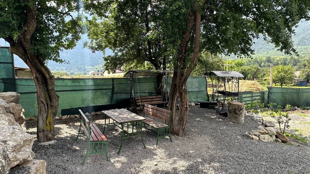 На территории гостевого двора вас ожидают несколько комфортабельных деревянных домов. Каждый из них оснащен собственной террасой и мангалом, что позволяет готовить ароматные блюда на открытом огне, любуясь горными пейзажами. После насыщенного дня вы сможете расслабиться в бане на дровах.