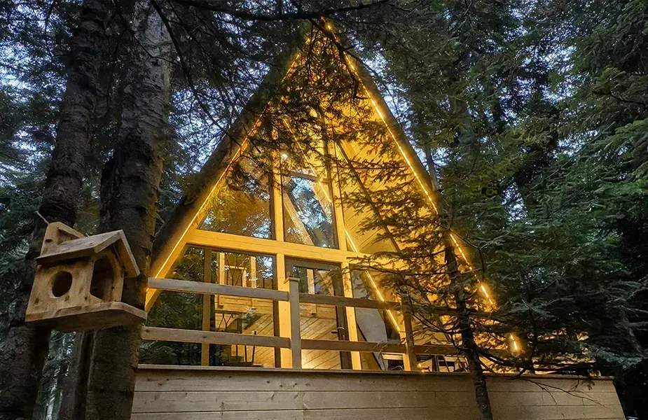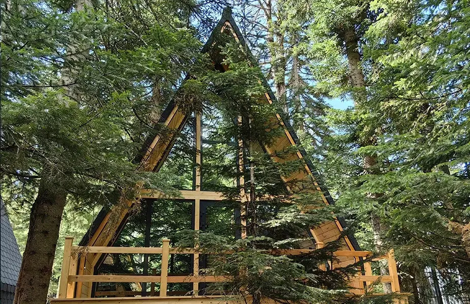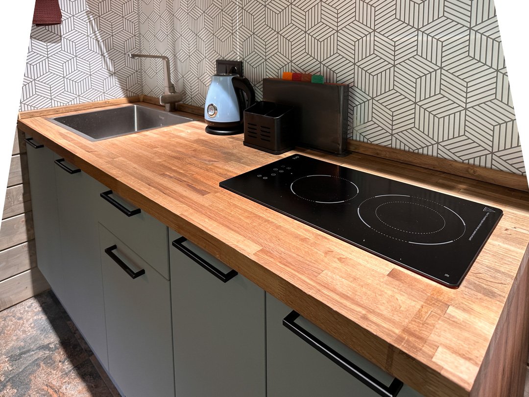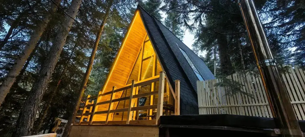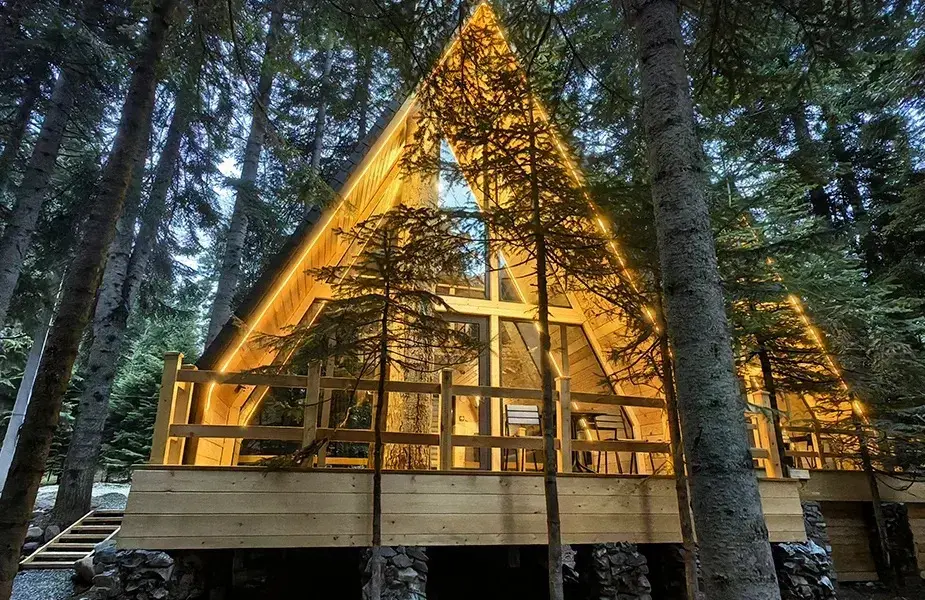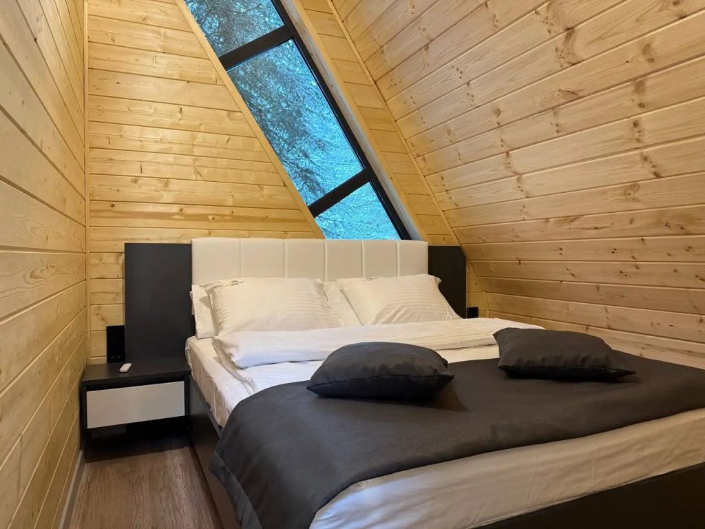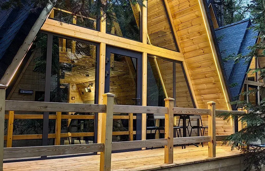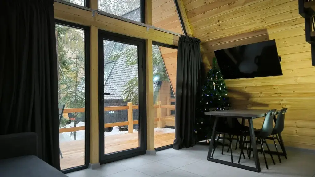 Деревянные коттеджи оборудованы террасами с мебелью и мангальной зоной. Внутри есть всё необходимое: бытовая техника, посуда, удобная мебель, постельное бельё, санузел, душ и полотенца. Администрация базы тщательно следит за чистотой как в домиках, так и на территории.