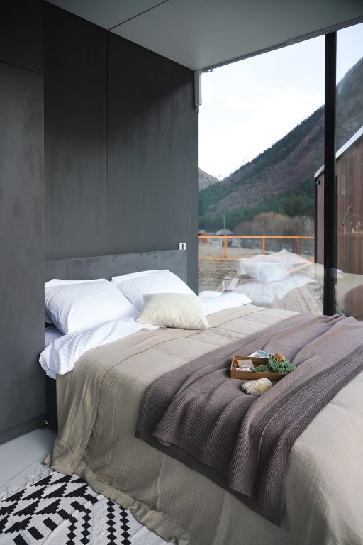 Стильный коттедж с панорамными зеркальными окнами создан для любителей красивых горных пейзажей.