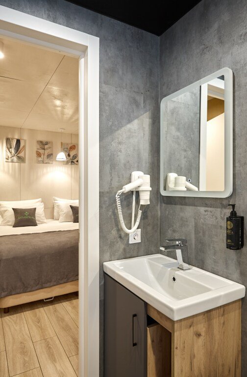 В номере есть телевизор и халат. Оснащение зависит от выбранной категории номера.